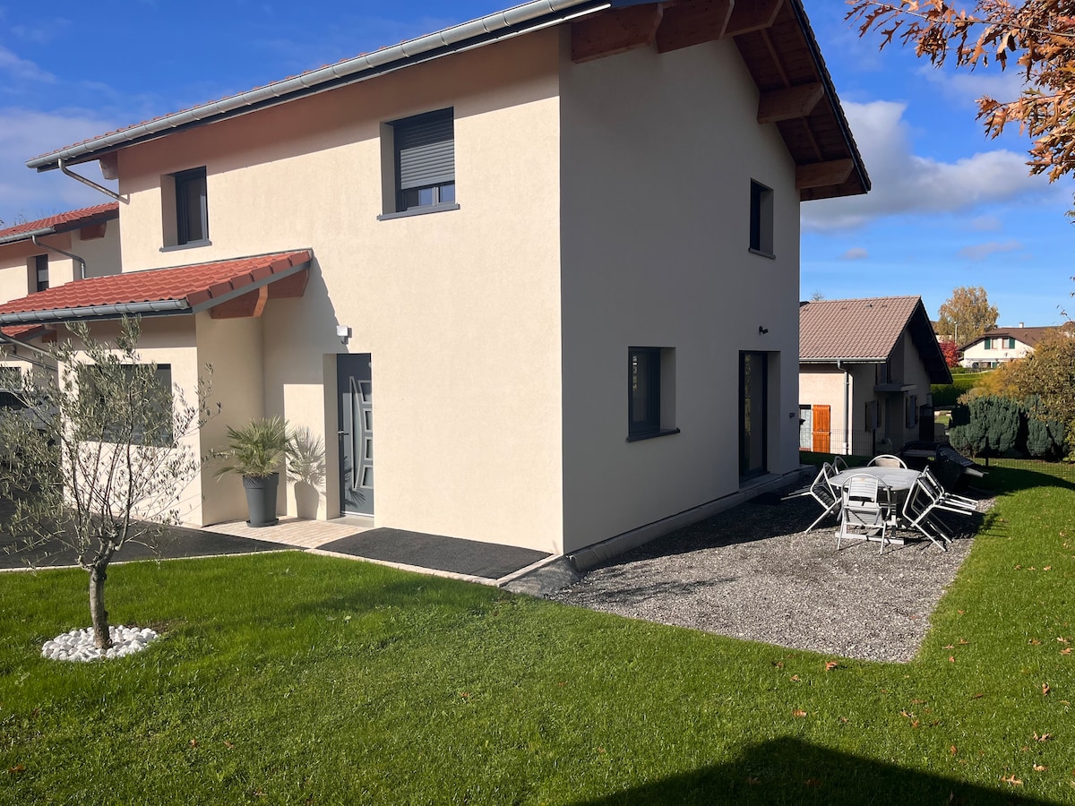 Profitez de cette charmante maison de village d’où vous pourrez aisément visiter la région.Attention sachez qu’un escalier en bois mène au 1er étage: 2 chambres lits doubles 160 une avec balcon, 1 chambre lit 90/190. Rez: Salon et cuisine donnant sur une terrasse, salle de bain/wc Située à 5 minutes à pied des commerces.Le lac Léman, ses charmants villages sont à 20 minutes de voiture et les première pistes de skis à 30 minutes. De belles promenades en pleine nature au départ de la maison.
