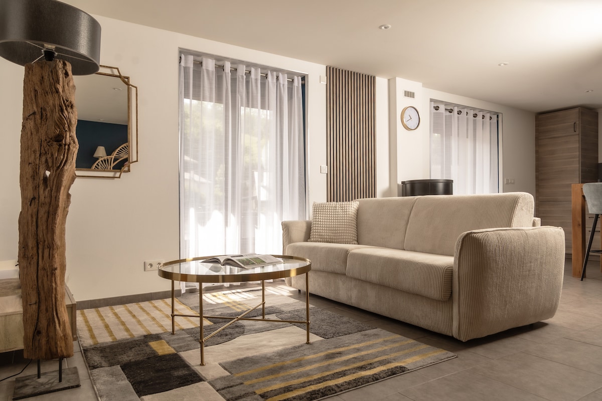 L'appartement vient d'être refait et aménagé à neuf, il se compose d'une chambre avec lit double 140x190 (literie changée en 2025) une salle de bain avec baignoire, un salon/cuisine avec vue sur la nature et le lac. La cuisine et la salle de bain sont entièrement équipées. Des produits de base sont mis à disposition afin que vous n'ayez pas à courir au magasin ou à encombrer vos valises. Vous avez la possibilité de stationner à la maison lors de votre arrivé et de vous garer à 1min à pied