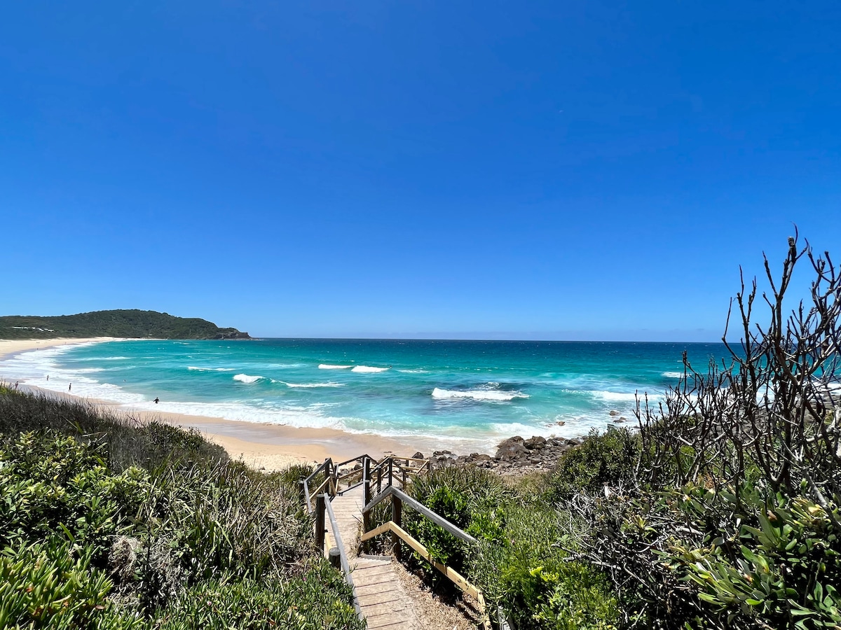 An award winning architectural designed home enjoying the perfect position, footsteps from beautiful Boomerang Beach. A quiet coastal retreat close to Sydney and Newcastle invites you to relax and rejuvenate whilst enjoying the pristine beaches, boating, diving, surfing and everything else on offer. A wrap around deck on the top level offers spectacular ocean views, sparkling sunrises and front row seats to the whale migration from May to October. All bed and bath linen provided.