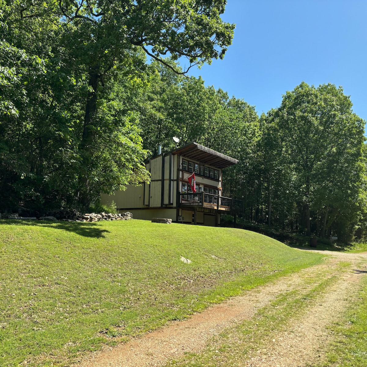Enjoy this peaceful spacious setting with a hot tub (semi private) and fire pit. Just minutes away from Cricket Creek Marina on beautiful Table Rock Lake. Rent a boat were some exciting water adventures or fishing await . Just a couple minutes from the State Park swimming area. A short drive to Top of the Rock, Big Cedar Lodge,and Thunder Ridge Nature Arena, just 15 minutes to world class golf courses. Easy access to the Branson strip about 20 minutes, with shopping and entertainment galore.