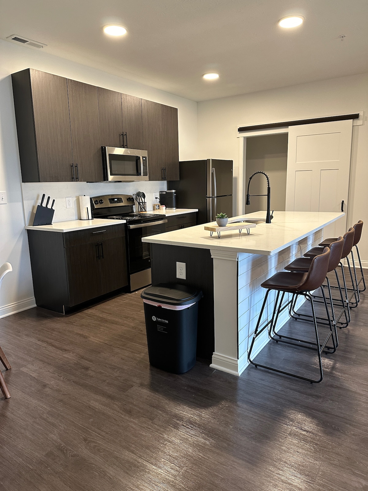 Walking distance to Zionsville Village's main street with restaurants and shops. Close to the rail trail for your outdoor fitness wants and needs! This unique Black (exterior) & White (interior) two-unit-bungalow offers modern comfort and will make for a memorable stay. Enjoy two private walk-out decks and one small fenced in yard with this upper unit overlooking the lush surroundings and horse pastures in the distance. We consider a well behaved, house trained pet for an additional pet fee.