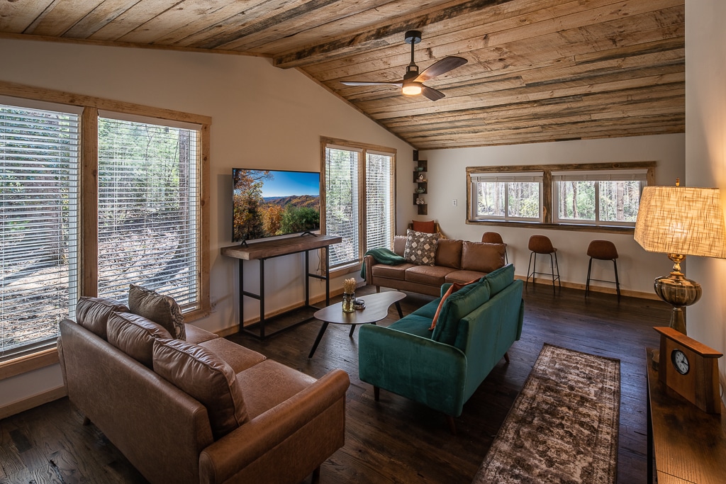 Have it both ways with the Tiny Cabin-a retreat in nature AND a 5 minute walk to historic downtown Todd or 15 to 20 minutes to downtown Boone and W.Jefferson. Enjoy the well appointed Tiny Cabin and the PRIVATE 500sq ft screened in lounge, with private access to a hot tub, fire table , dining nook, and yoga/workout area. Cook meals in the cabin's full kitchen or outdoor grilling area. Relax and refresh while experiencing the joy of tiny cabin living!