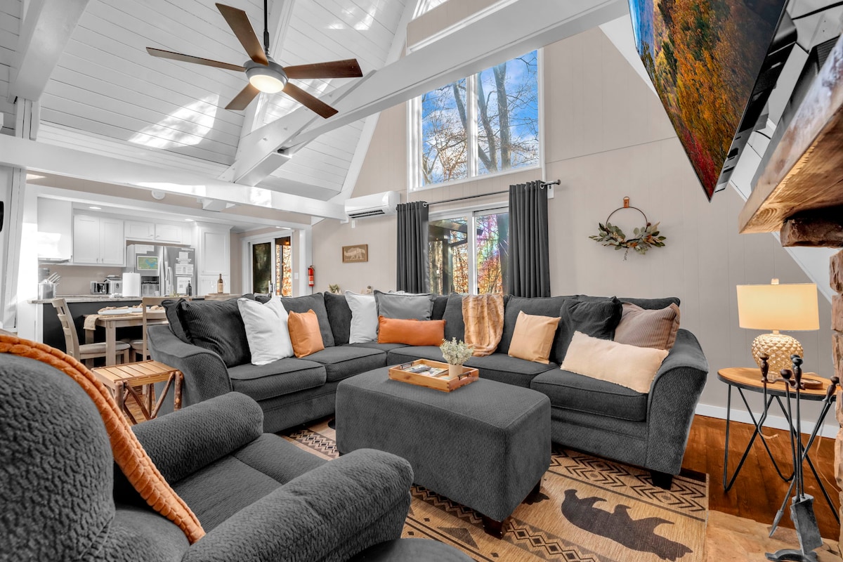 •1 king bed & 2 twins in loft •covered porch w sectional couch & TV •Fully stocked kitchen •Resort Amenities (heated pool- open Memorial day to Labor day& public lake) •18 Hole Golf • Pickelball •Christmas Tree farms nearby •Gas grill & relaxing covered outdoor area • MIni- Split HVAC • 20 Min to Banner Elk • 30 Min to Boone •Fast Wifi and three smart TVs •Walk in SHWR •10 min to Grandfather & BRPW • Numerous Wineries & Breweries close by •Great hiking trails in neighborhood and close by