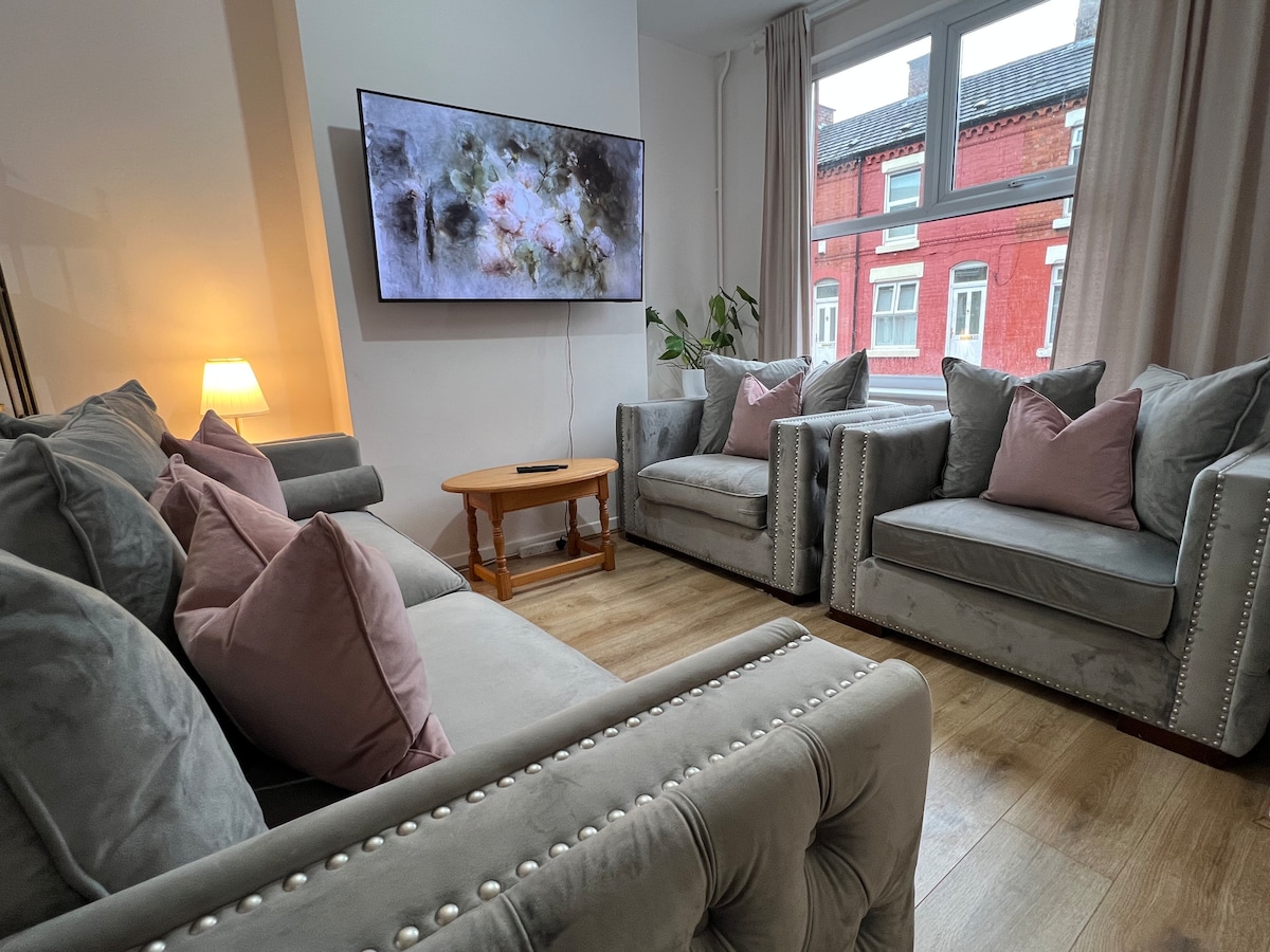 Welcome to our home in Liverpool. It is a spacious 2 bed home, in a perfect location for access to the city centre and both football grounds. - City Centre (Lime Street Station) : 1.2 miles (5min car journey) - Anfield Stadium: 2.3 miles (7 min car journey) - Everton Stadium: 2.3 miles (7 min car journey) -Free off road parking (gated driveway) - Smart TV with access to Netflix - Fully equipped kitchen, bathroom and living area - Flexible check in/check out (if needed please enquire)