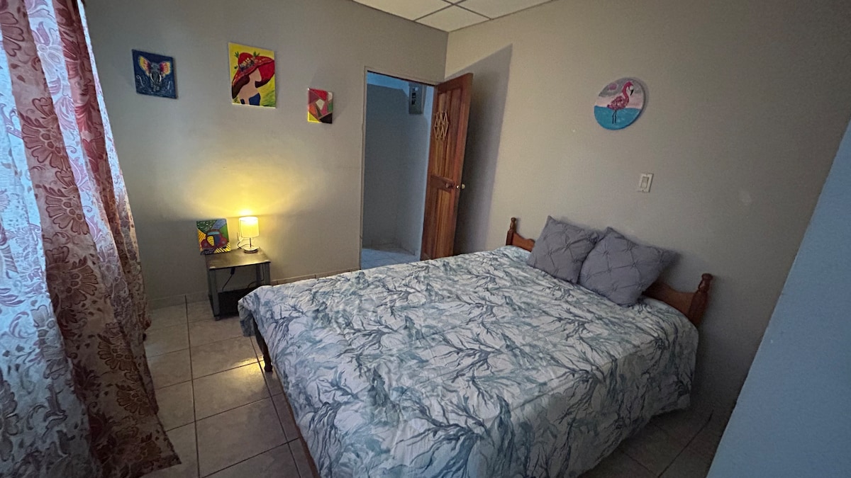 This listing consists of a Lovely, private 2 bd and 2 ba apartment with full kitchen, 2k from town. This is the lower quarters of a private 2 story residential home with its own private entrance. Each additional guest (after 4) $35.00/night. The views and sunsets from this area are breathtaking. Both Bedrooms include private baths. plenty of parking on the property. High speed internet and cable TV. Close to town, 3 Kilometers, but quiet. No pets please due to ALLERGIES!!!