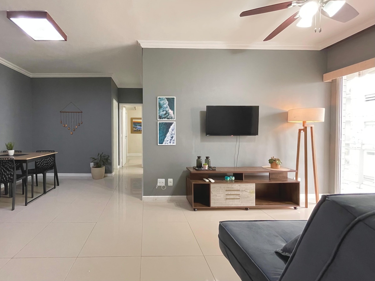 Apartamento charmoso e confortável, ideal para famílias ou amigos. São 2 quartos (suíte queen + casal) e sala com sofá-cama, todos com ar-condicionado, Smart TVs e varanda ampla e iluminada. Cozinha completa com lava e seca, geladeira duplex, airfryer, cafeteiras (elétrica e Nespresso). Wi-Fi rápido e secador de cabelo disponíveis. A localização é estratégica: apenas 5 minutos da Farmasi Arena, Parque Olímpico, RioCentro e Projac, e a 10 minutos das praias do Recreio, Reserva e Barra da Tijuca.