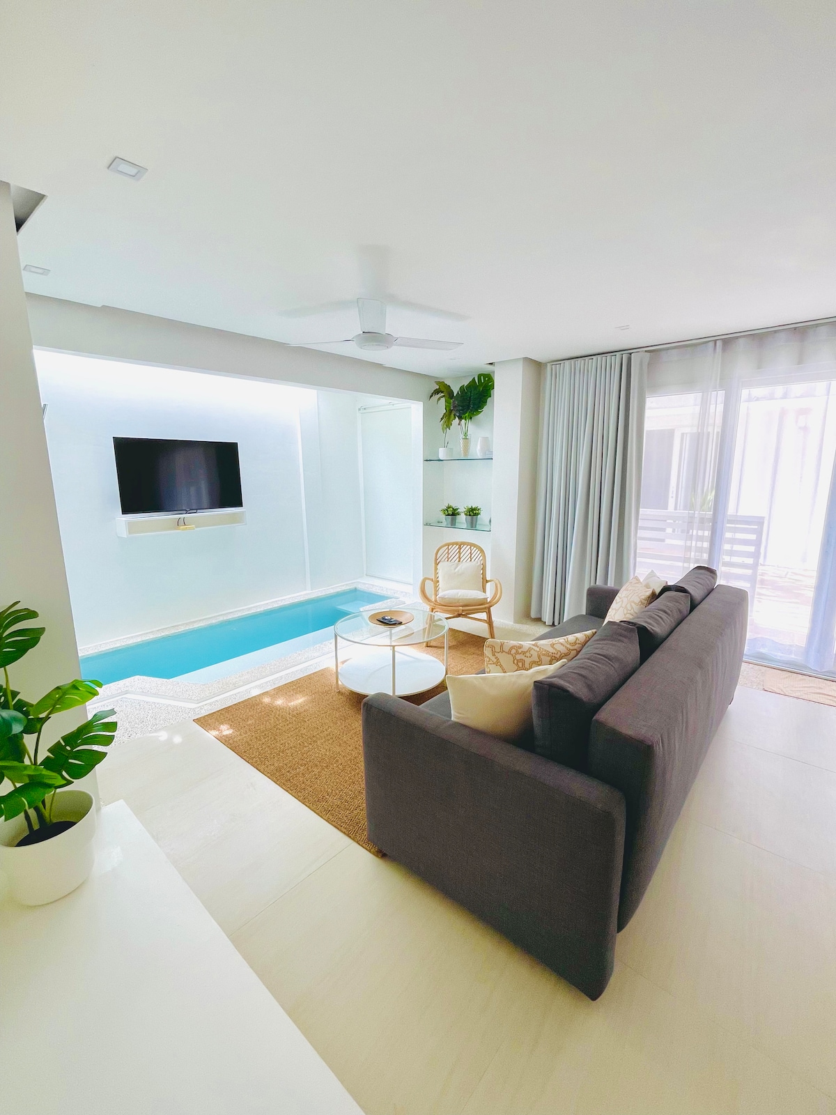Our bright, contemporary, luxury apartment is immaculately presented. Featuring a beautiful internal dipping pool, large fully fitted kitchen and open plan living space. Only a 5 min walk from the D’Mall area and 7 min walk to all there is to offer at White Beach. Our apartment is one of the largest of many apartments available on this development, so if you are looking for more rooms, group accommodation etc, please do not hesitate to contact us.
