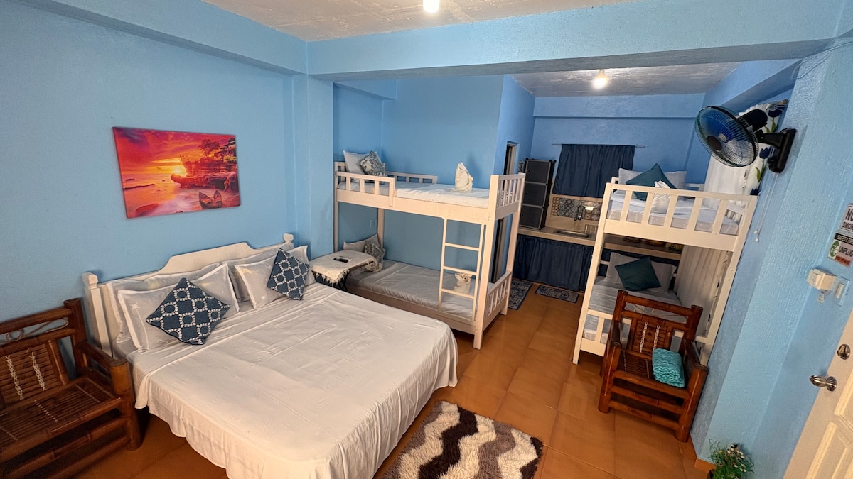 This is a clean accommodation suitable for two people. It is located a 7-minute walk from Dmall and a 1-minute walk from Bulabog Beach. You can freely use the rooftop, and since it is a diving resort, we offer free rental of snorkeling equipment if you wish.