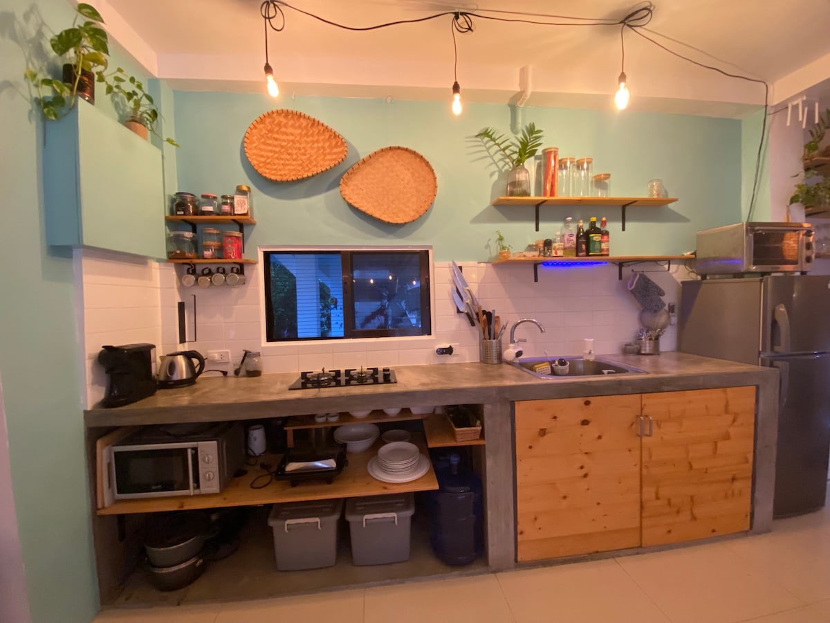 The group will enjoy easy access to everything from this centrally located place. This place is 12minutes walk from Dmall and 5minutes walk to Bulabog beachfront. Its the only 4 bedroom Balinese style villa (open space design) with swimming pool, kitchen and griller in the area of Bulabog. The house is located in a residential area. Not very busy but still very accessable with etrikes and habal. Expect roosters every morning which makes you closer to nature while watching the sunrise set.