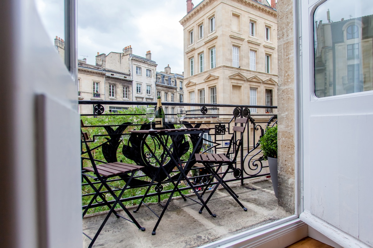 You are welcome in my beautiful 1 bedroom flat typically "Bordeaux style" with its limestone wall and its extravagant marble fireplace. Full of character, very clean, comfortable and light, it has the best location in the most charming part of the old city-center. Easy access by foot to all places in the city center. The apartment is on the 1st floor (without lift) of a 19th century building. There is a PUBLIC CAR PARK (NOT FREE) called "Camille Julian" at 20 m away from the building.