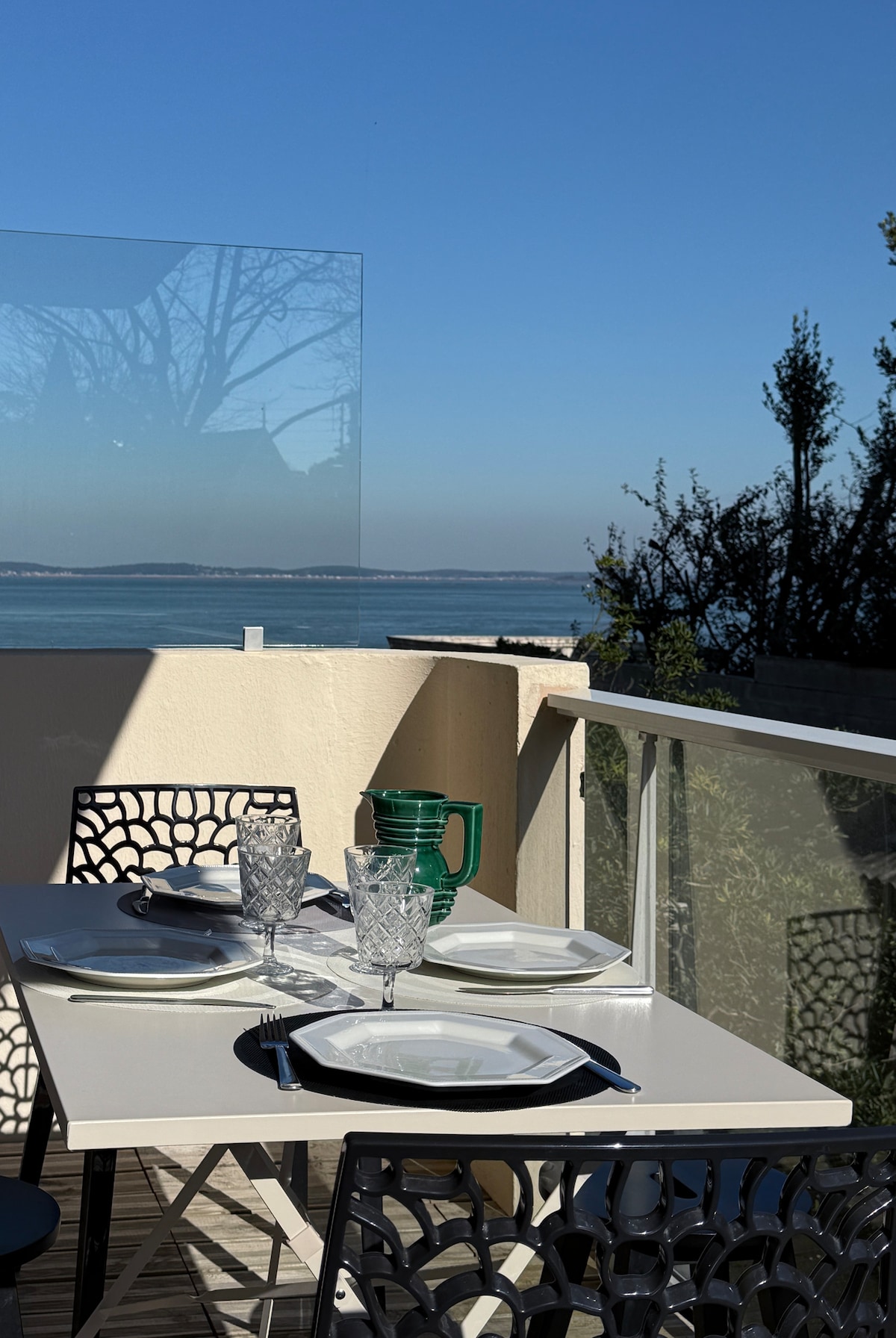 Beau studio en première ligne, vue imprenable sur le bassin d'Arcachon, tout juste rénové, au centre ville d'Arcachon. Idéal pour trois personnes, il est situé au 4e et dernier étage d'une résidence calme avec ascenseur. Les plus : Large et agréable balcon face au bassin, accès direct plage, une place de parking privée, la ville à pied, un court de tennis. Couchages : Vrai lit armoire relevable, un lit une place dans une pièce séparée. Juillet/Août : Location à la semaine, arrivée le samedi.