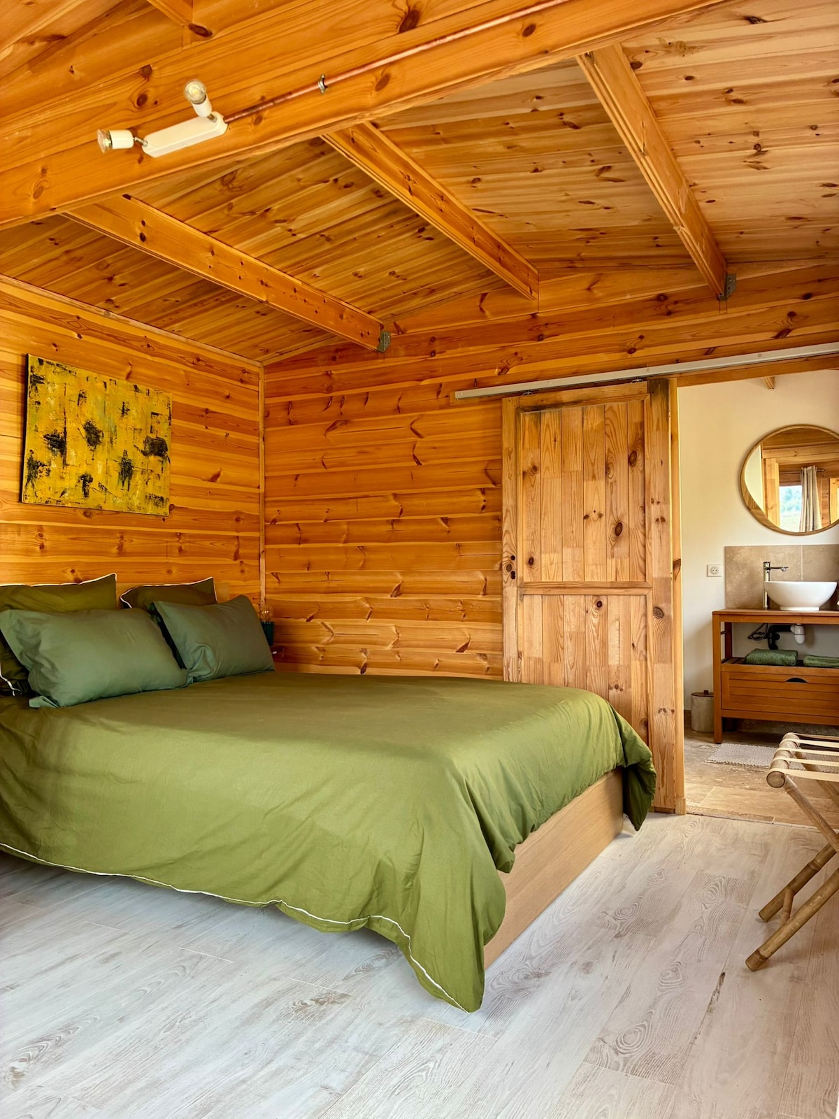 La cabane est particulièrement cosy, elle est aménagée avec goût. Nous y avons mis tout notre cœur. La cabane offre une grande qualité de confort. Elle est dotée d’une terrasse propice à la détente et à la relaxation. Ces cabanes de 26m2 sont idéales pour recevoir un groupe d’amis, des familles ou couples en escapade romantique. Chaque cabane peut accueillir 4 personnes. Au coeur de la nature, vous pourrez vous détendre et profiter d'un environnement paisible.