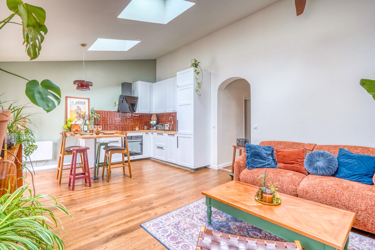 ✨ Your haven of peace between Bordeaux & the Ocean ✨ Welcome to this warm and comfortable apartment, ideally located in Eysines, in a quiet residence just 20 minutes from the center of Bordeaux and 10 minutes from the airport. Whether you're on a business trip, a couple or a family, this modern, well-equipped space will offer you a unique experience: private cinema on 85” screen, air conditioning, parking with charging station, and easy access to beaches, vineyards and bike paths.