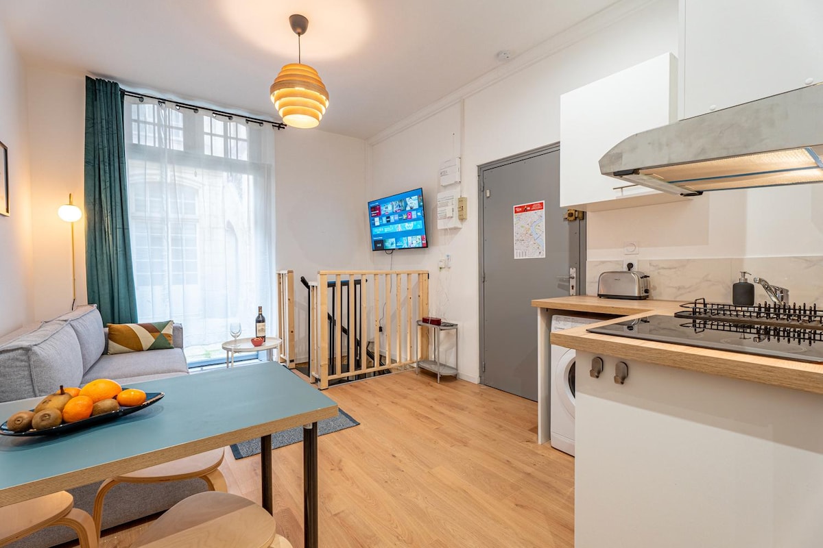 Bienvenue dans ce studio lumineux à l’agencement unique, au cœur de Bordeaux ! Emplacement exceptionnel dans la célèbre rue st-Catherine: commerces, restaurants, transports et sites touristiques au pied de l’immeuble. Arrivée autonome 24h/24, Wi-Fi rapide, cuisine équipée, lit queen size, cinema, baignoire balnéothérapie, climatisation, balcon avec vue…tout est pensé pour votre confort ! Que vous soyez en amoureux ou en déplacement pro : préparez vous a vivre une expérience exceptionnelle !