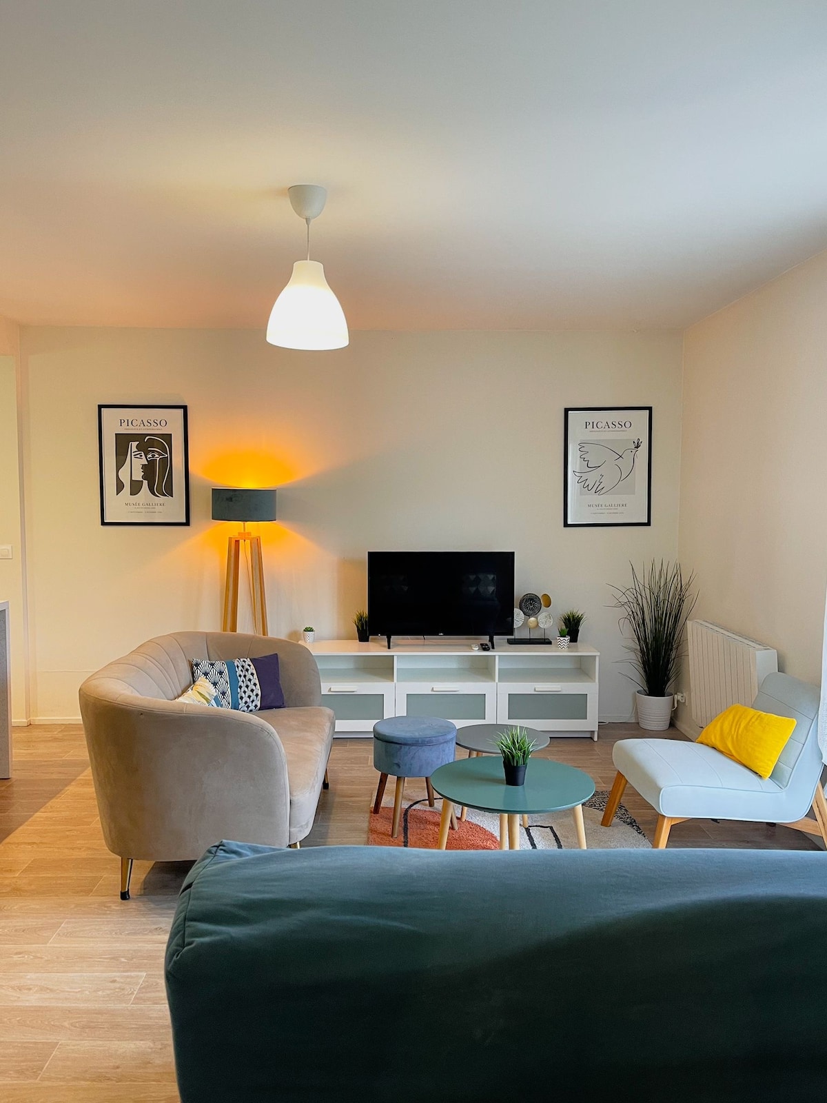 Set down your luggage in this lovely apartment located in a former private mansion. Just a 3-minute walk from the train station and close to the city’s historic center. Located on the first floor, the apartment is fully furnished and equipped, and very bright thanks to its large wraparound balcony. The bedroom is in the mezzanine, with a ceiling height of 1.85 meters. A refined blend of modern comfort and old-world charm, with Versailles parquet flooring and stunning ceiling moldings.