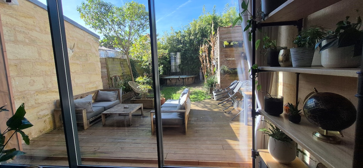 Bienvenue dans notre maison familiale en pierre, un havre de paix au cœur de Bordeaux Bastide. Vous profiterez d’un jardin verdoyant avec piscine chauffée, d’une pièce lumineuse où un piano vous attend, et d’une ambiance conviviale et apaisante . C’est notre maison familiale, un îlot de verdure en ville, où mes filles et moi vivons. Stationnement gratuit à proximité. Une expérience unique alliant confort, nature et ville.