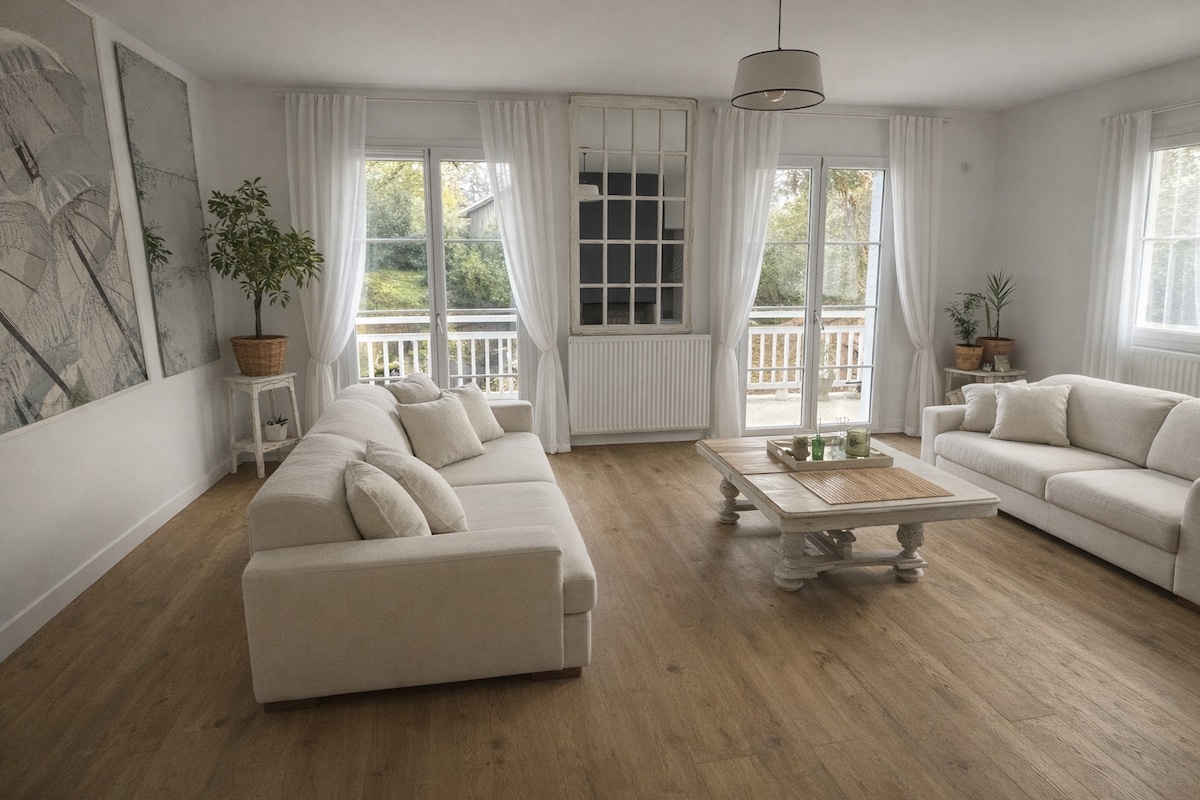 ✨ Welcome to Villa Amara ✨ 🏡 An exceptional residence – Classified furnished tourist accommodation 5★ This elegant and bright villa can accommodate up to 8 people, offering a unique setting combining comfort and refinement. 📍 A true haven of peace – Enjoy an enchanting patio with swimming pool (3x3m), nestled in the heart of the house, for moments of absolute relaxation. 🌿 A comfortable stay – Spacious living spaces, high-end bedding, fast Wi-Fi, sheets and towels provided.
