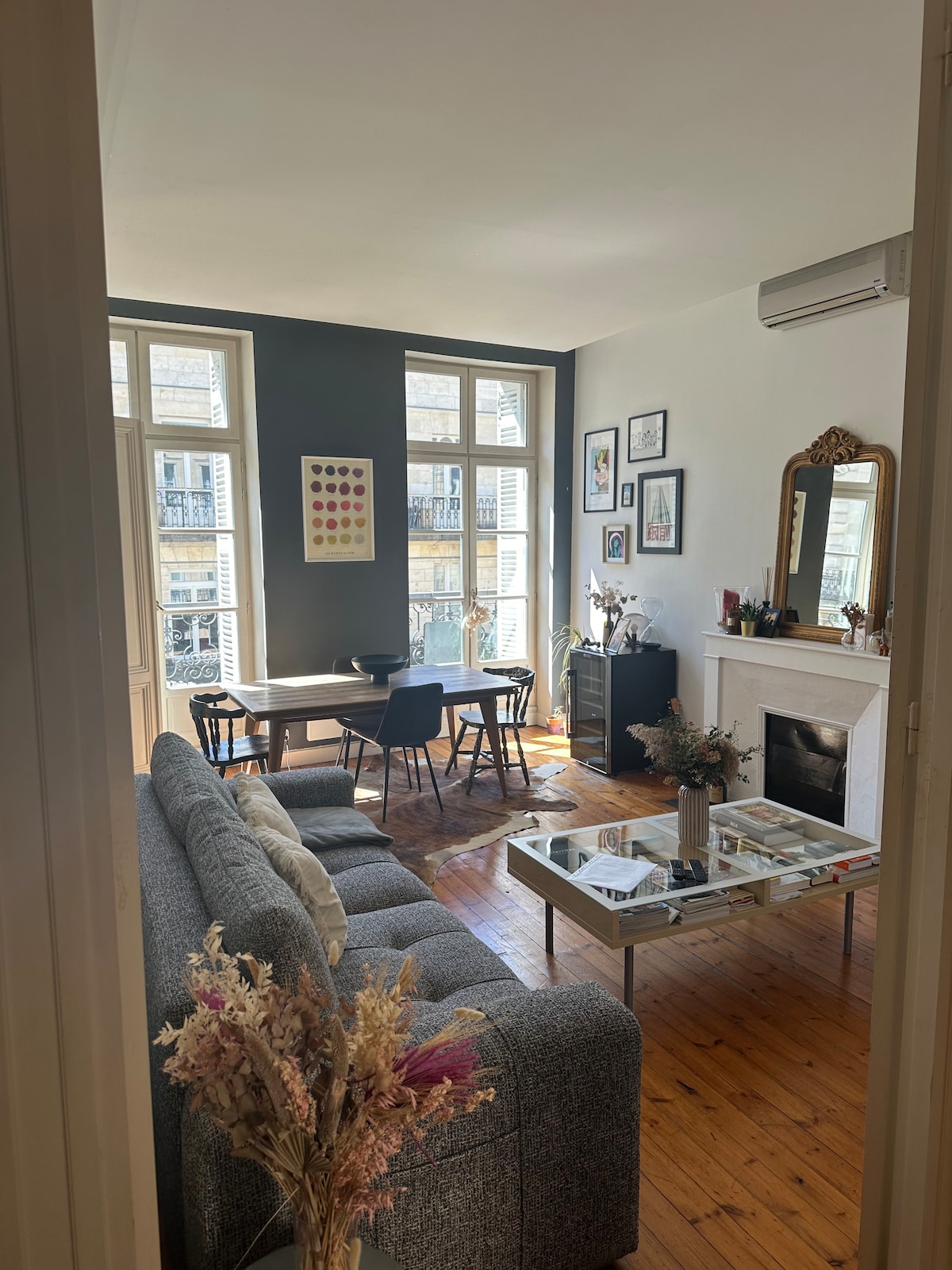 Meublé de 55m2 ( 40 + 15m2 de mezzanine. plus de 4m de hauteur sous plafond.) pour 4 personnes situé dans le centre historique de Bordeaux, à 2 pas du cours Victor Hugo, de la Grosse Cloche et de la place Saint Michel avec son marché et ses commerces. Vous serez idéalement placés pour visiter la ville à pied. meublé très lumineux, orienté plein sud. double vitrage. La Clim est interdite dans le centre historique de Bordeaux. Il y’a 3 ventilateurs à disposition. Vous aurez 2 clés.