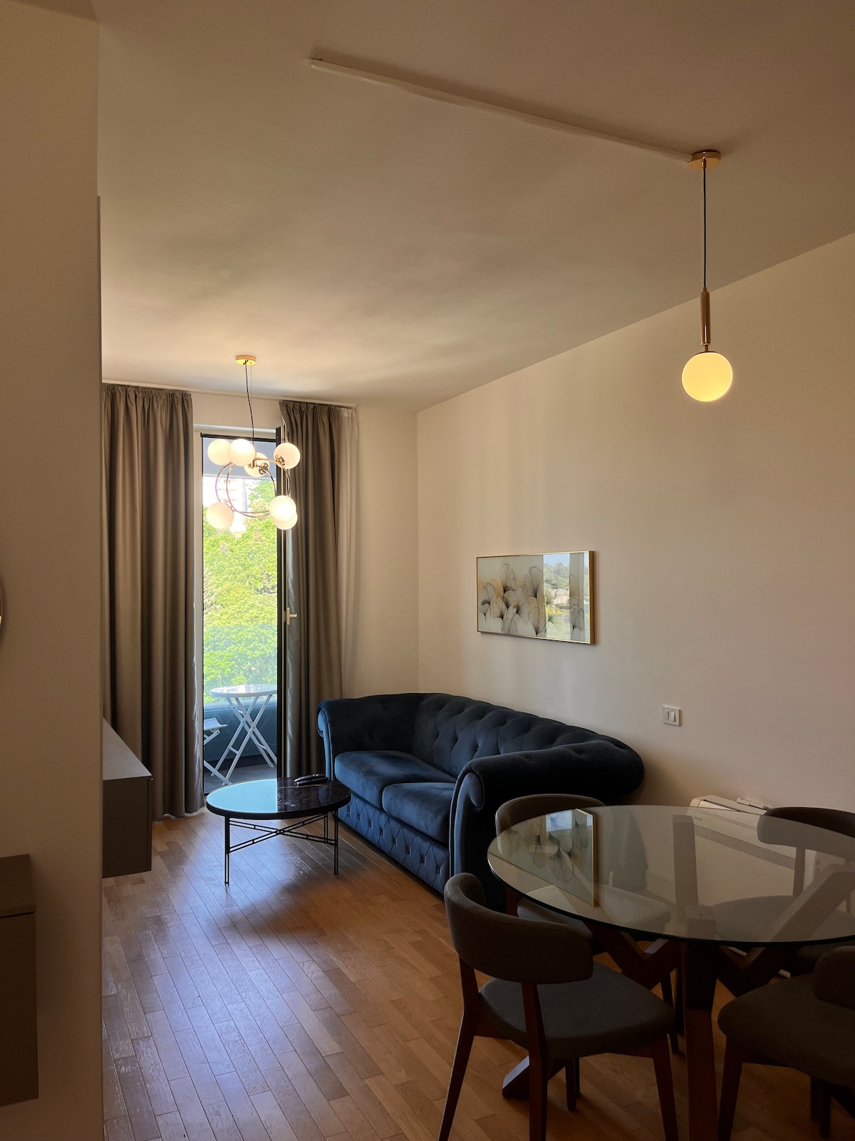 Fully furnished with modern interiors brand new apartment in the hearth of Budva! Within walking distance of day & nightlife options. Exclusive restaurants, cafes, supermarkets, night clubs, 4-minutes walking distance from waterfront promenade/beach. In the middle of all actions but just far enough where it won't affect your SLEEP. Enjoy beautiful views of the sea and the city of Budva from the private balcony. THIS IS THE PLACE TO STAY.