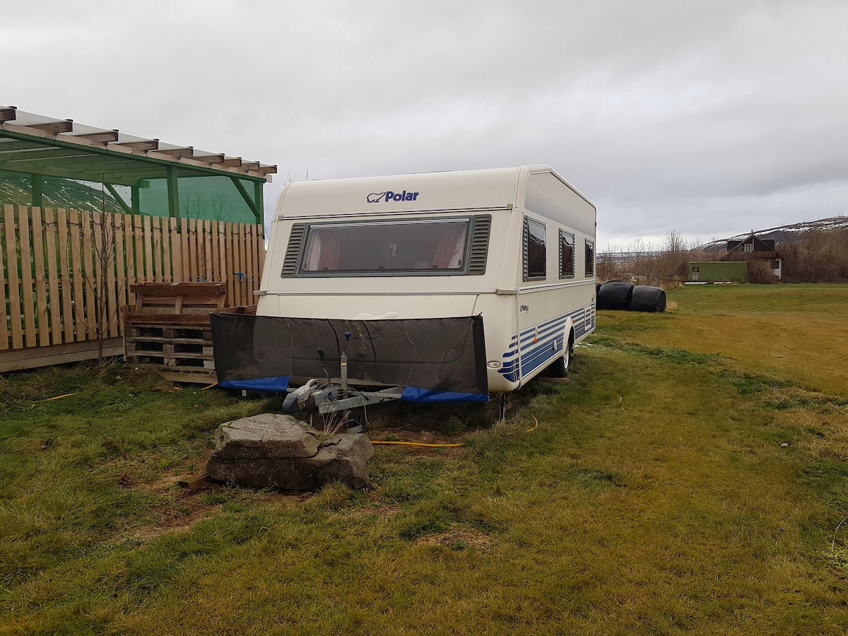 We are located in the center of a trip to Snæfellsens National park, West-fjords and if you want to travel to the North side of Iceland or in Borgarfjörður. The camper is heated with water and built to use in winter time in down to minus 30 degrees. The kitchen has every thing you need to cook. Out side there is a hot tub and a shower with geothermal water.