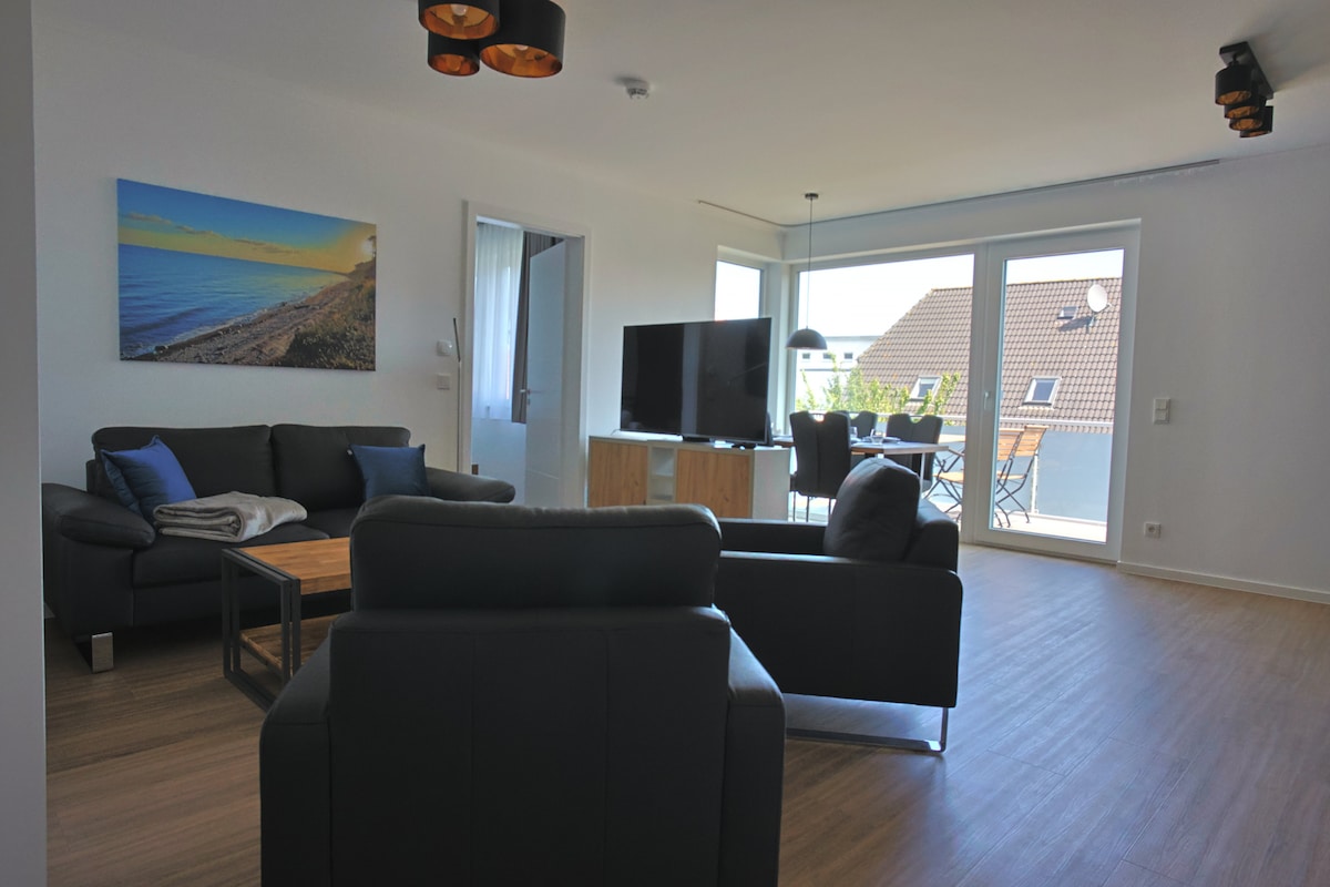 Unsere exklusive Ferienwohnung Wellenfunkeln ist der ideale Ort für Ihren Ostsee-Traumurlaub. Freuen Sie sich auf eine lichtdurchflutete modern und stilvoll eingerichtete Penthousewohnung mit 2 Balkonen und direktem Blick auf die See. Die 2019 fertig gestellte 72m² große Wohnung befindet sich im 2. OG/Dachgeschoss in der neu erbauten Appartmentvilla "Strandperle" mit insgesamt 7 Wohneinheiten und liegt nur ca. 200m vom Strand entfernt.