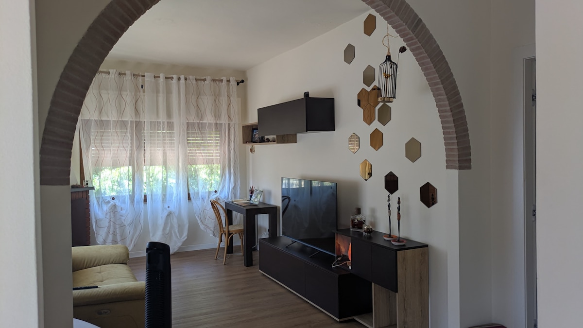 Il palazzo è stato oggetto di lavori "ecobonus 110%" e pertanto totalmente rinnovato. Appartamento con nuovi arredi moderni, dotato di tutto punto (in particolare di due nuovi climatizzatori Mitsubishi: in soggiorno ed in camera), con parcheggio coperto condominiale e vicinissimo alla stazione ferroviaria e all'imbocco autostradale, a pochi passi dal centro e lungo un bel Corso... su cui è ubicato...! Soggiornare per credere!!! Ben trovati ed al piacere di condividerlo: parola di Liliana!.