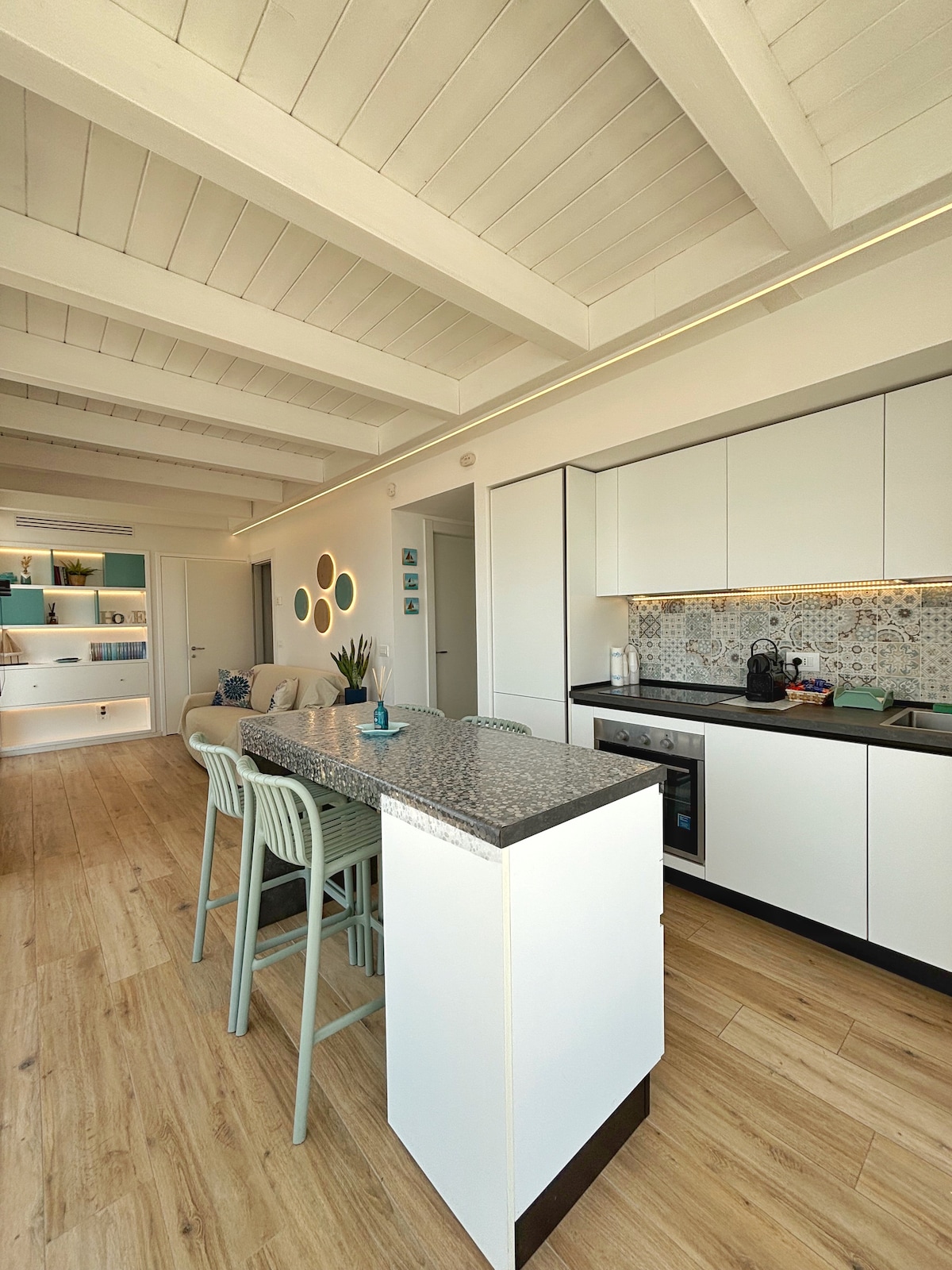 "Seafront penthouse suite with terrace" is an accomodation in a residential area of Monopoli city, a famous place on the Adriatic sea with the natural creeks and old town, in which you can find typical restaurants, pub and night life. The guests have a double bedroom with memory foam, conditional air, fridge, TV, WI-FI, bathroom, and exclusive access to a terrace overlooking the sea with relax area. Ideal accomodation to couples looking for a relaxing holiday.