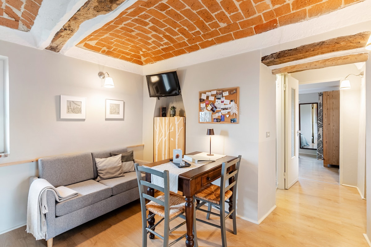 Santa Maria - Splendido appartamento appena ristrutturato nel centro storico, zona quadrilatero romano, in un edificio del 1400. Questo appartamento di design coniuga atmosfere e confort moderni con una struttura della storia di Torino. La zona è rinomata per la sua vitalità, piena di ottimi ristoranti e locali dove poter gustare degli ottimi aperitivi. Passeggiare tra le vie adiacenti fa respirare la vera atmosfera Bohémienne torinese. La zona centrale è servita comodamente dai mezzi pubblici.