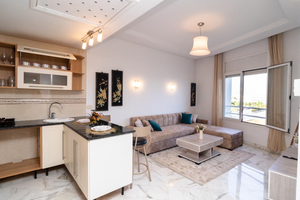 Appartement neuf, luxueux et parfaitement situé à Ennasr, dans une résidence moderne et sécurisée juste derrière clinique Amilcar. Profitez d’un salon lumineux avec grande TV, IPTV/Netflix et coin repas raffiné. La chambre offre un lit premium, de beaux rangements et une seconde TV. Cuisine moderne entièrement équipée, salle de bain élégante façon marbre. Fibre haut débit, clim dans chaque pièce, électroménagers neufs et parking privé. Un cadre chic et confortable pour un séjour inoubliable.