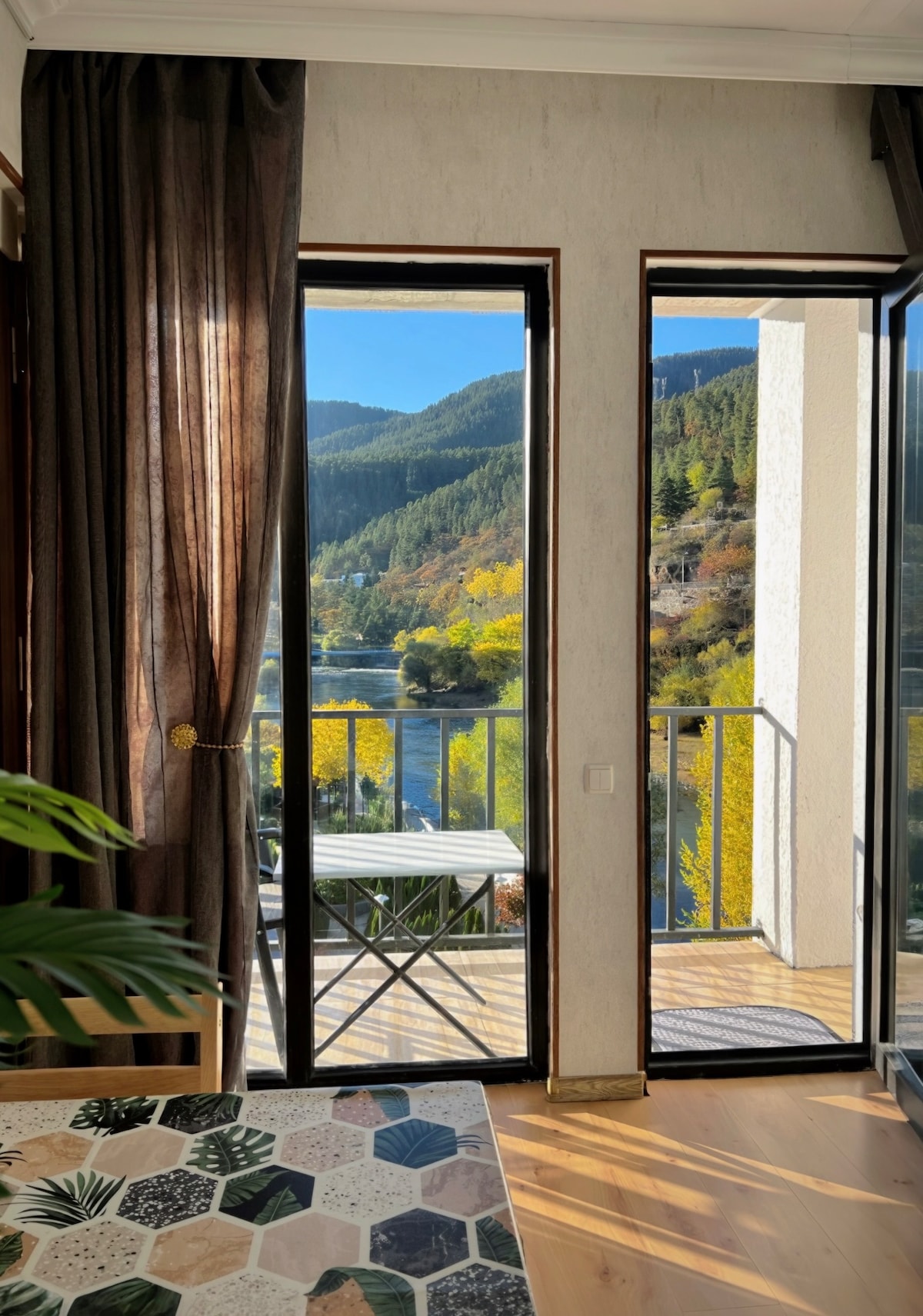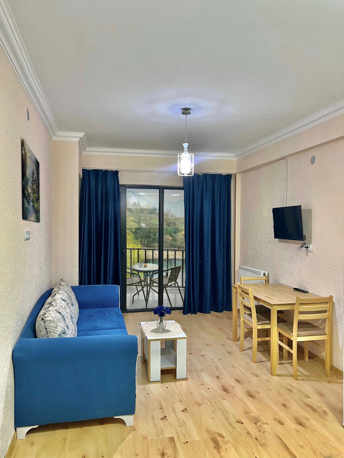 Your Cozy Retreat in Bakuriani — Where Nature Meets Comfort Imagine waking up to the sound of a river flowing, birds singing, and a breathtaking view of the Didveli slopes unfolding right outside your window. This isn’t just a vacation — it’s your quiet escape into nature, peace, and comfort. Our apartment is located in one of Bakuriani’s most accessible and convenient spots, right by the main road — especially ideal in winter.