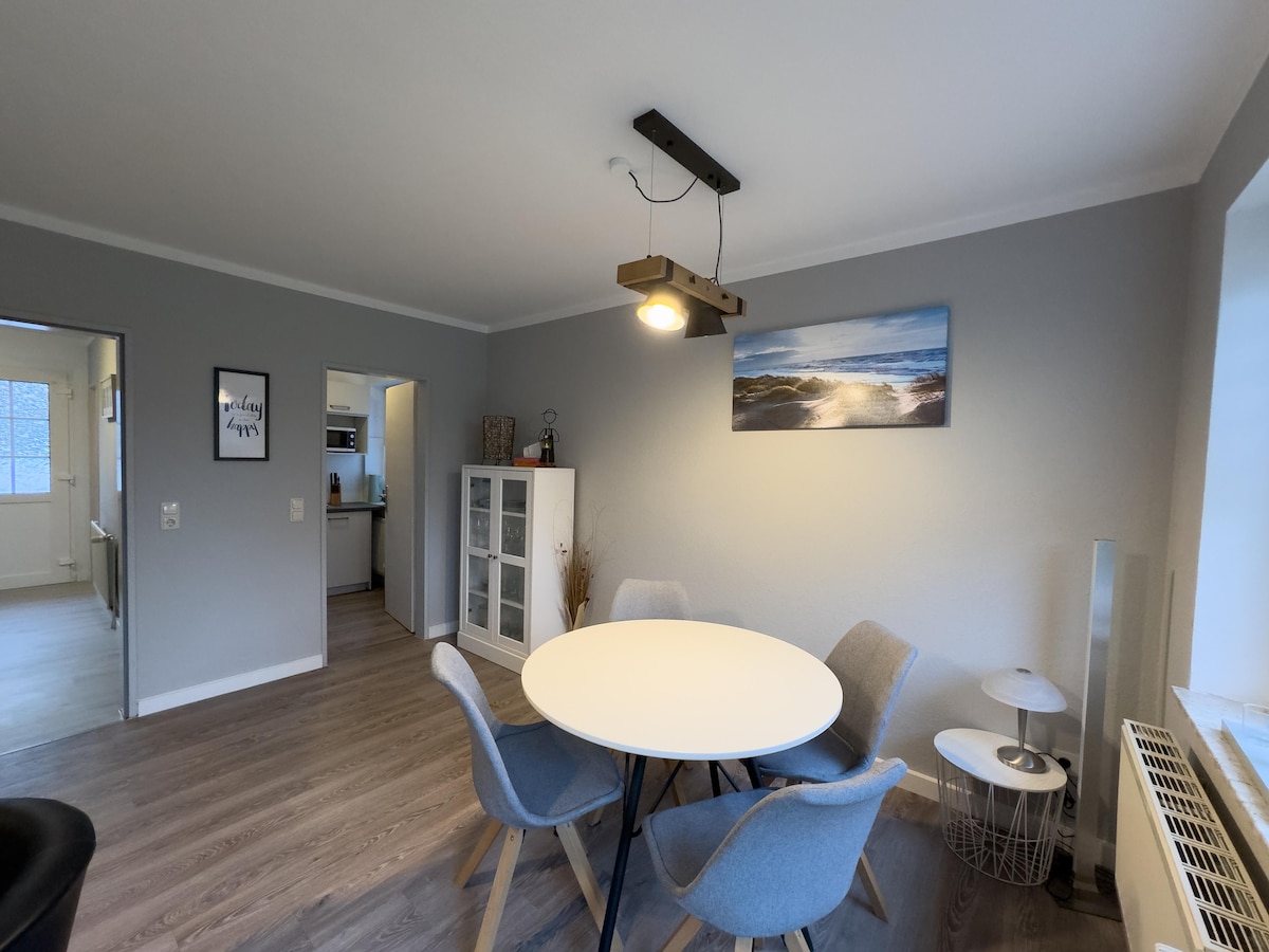 Willkommen in unserem Haus am Meer! Ein niedliches Reihenhäuschen in einer ruhigen Siedlung nicht weit vom Deich und Wattenmeer. Es ist hell und gemütlich. Geheizt wird mit einer Bio-Infrarotheizung und auch sonst versuchen wir umweltfreundlich und nachhaltig zu sein. Über das große Panoramafenster im Wohnbereich könnt Ihr den Deich sehen und habt einen weiten Blick übers Feld. Alles scheint wunderbar entschleunigend.