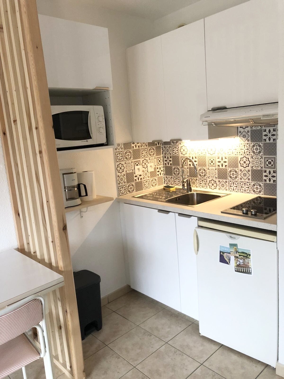 confortable studio, avec coin cuisine équipé (frigo+compartiment congélateur, cafetière, micro onde etc etc). TV écran plat, armoire de rangement, balcon avec table, chaise et parasol. Lit de 160. Jolie vie vue des collines depuis le balcon....un régal le matin en déjeunant avec le levé du soleil, Accès piscine avec transat à disposition. Solarium. Accès terrain de pétanque (boules sur place). Espace laverie avec machine à laver à votre disposition. Wifi gratuit. Place de parking privative
