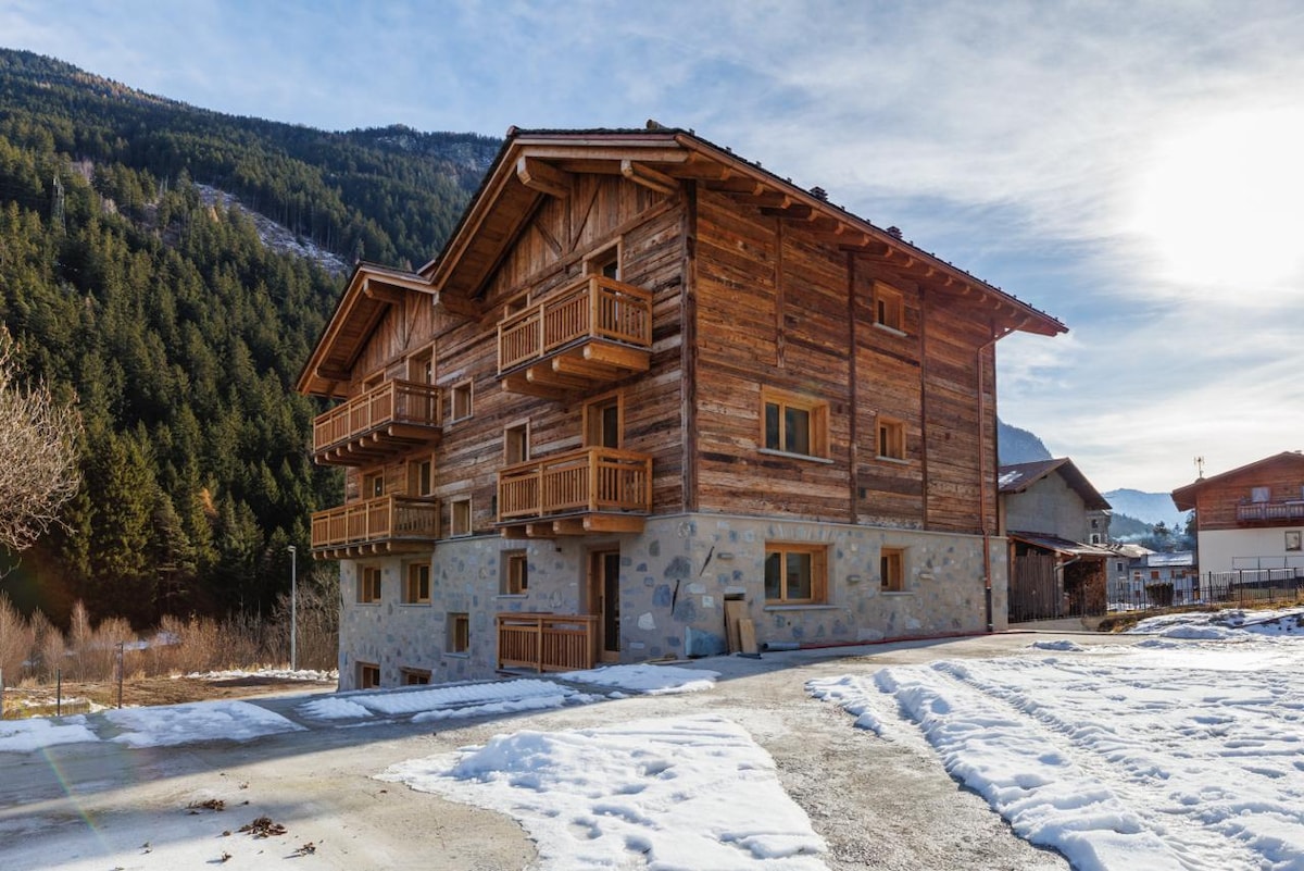 If you love mountains, halfway between Bormio and Livigno, you can find the quiet, the peace and the comfort you are looking for hosted in a refined and recently renovated chalet, surrounded by the nature and with a beautiful view of the magnificent "Cima Piazzi". Even it's located outside the town, the chalet, at the same time, it's a few steps away from basic necessities. It represents an ideal point of departure for excursions on foot or by bicycle.