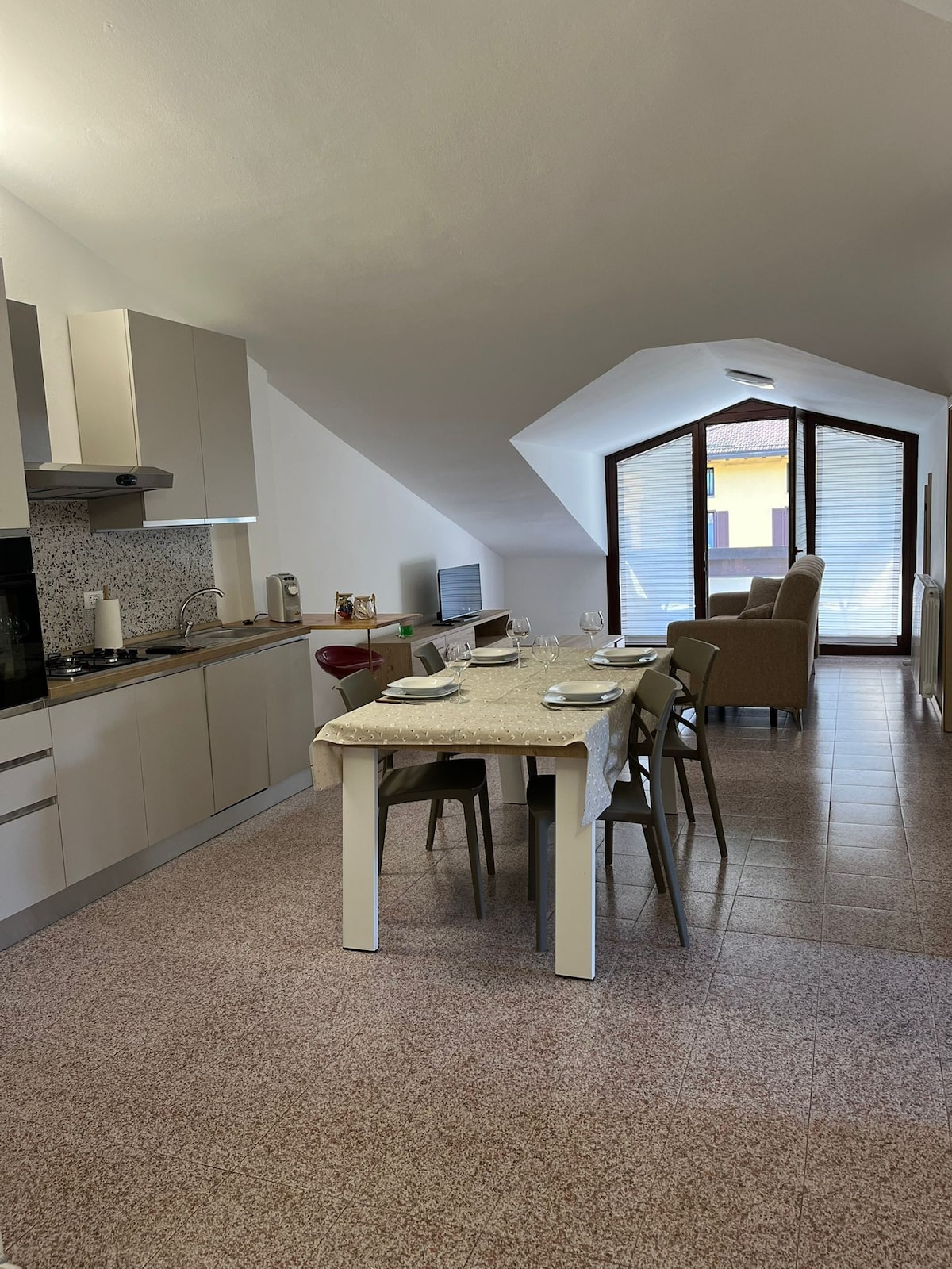 Newly refurbished apartment with everything needed for kitchen, bathroom and rooms, large terrace with beautiful views of the surrounding mountains and Adamello Park, just meters from the main road, surrounded by bars, pizzerias, beauty and wellness centers and shops every kind, bus stop 4 minutes walk away, free parking all around the square, in the middle of the main Alpine passes of Lombardy and Trentino Alto Adige, ecology-nature-sports-culture-relax-