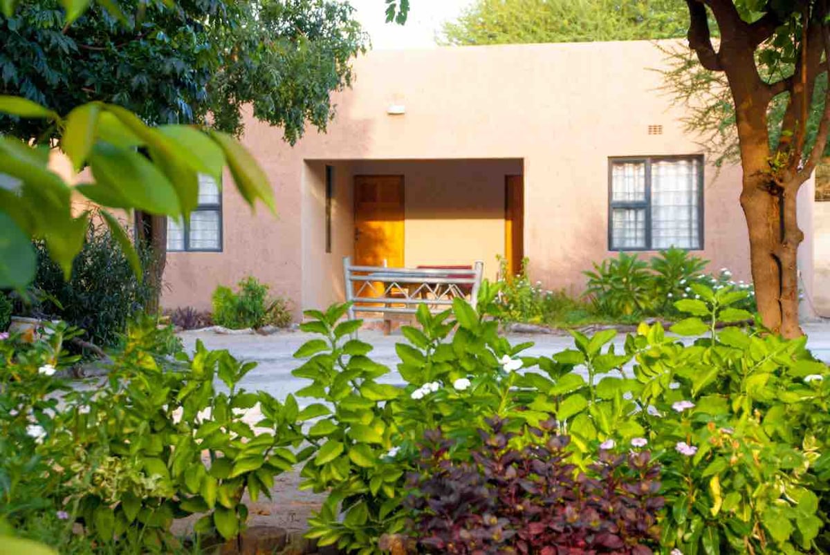 Motswiri Cottage. Enjoy the calls of the fish eagles by day and the owls by night. We are situated 10 Km from Maun on the Ghanzi road on a large & shady property next to the Thalamakane river. Perfectly positioned within 15 mins of Maun, however it is essential to have your own car to reach us. The cottage sleeps 2 adults & 2 children on a sofa bed in the lounge.