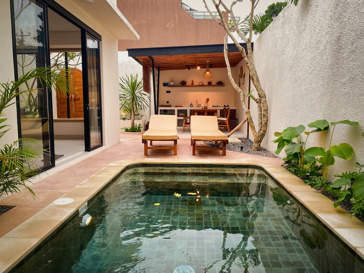 Villa estetik dengan kolam renang pribadi dan bathub. Unit Kamboja memiliki 1 Kamar tidur & kamar mandi dalam yang dilengkapi water heater, memiliki dapur lengkap dengan peralatan masak dan peralatan makan. Villa berkapasitas 2-3 dewasa.