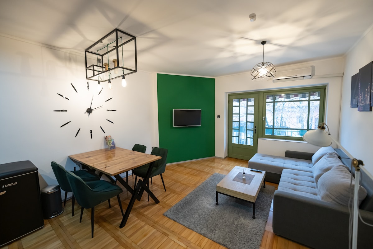 "Fully refurbished and nicely designed apartment 30 m distance from City Town Hall. The apartment is located in one of the prettiest and authentic streets of Subotica. Ideal for a short stay. Most of the city attractions are within walking distance. Maps and tourist info is provided. The apartment has all the basic amenities needed for you to have a comfortable rest and it is maintained and cleaned regularly. Under the apartment is daily bar with ocassional acustic events on weekend.