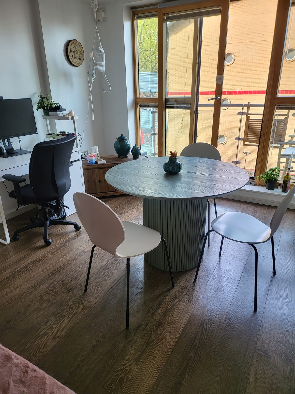 Unwind with a book in a Tranquil Oasis. Immerse yourself in Spitalfields' rich history from this serene 37sqm 1-bedroom haven. Relax in a Brazilian hammock beneath a full-height fiddle-leaf fig tree, the perfect spot to unwind as the city bustles beyond. Enjoy a laser cinema projector with a 100-inch screen and immersive sound to stream your favorite shows and movies. Powered by 100% renewable energy, this apartment blends comfort, entertainment, and sustainability in the heart of the city.