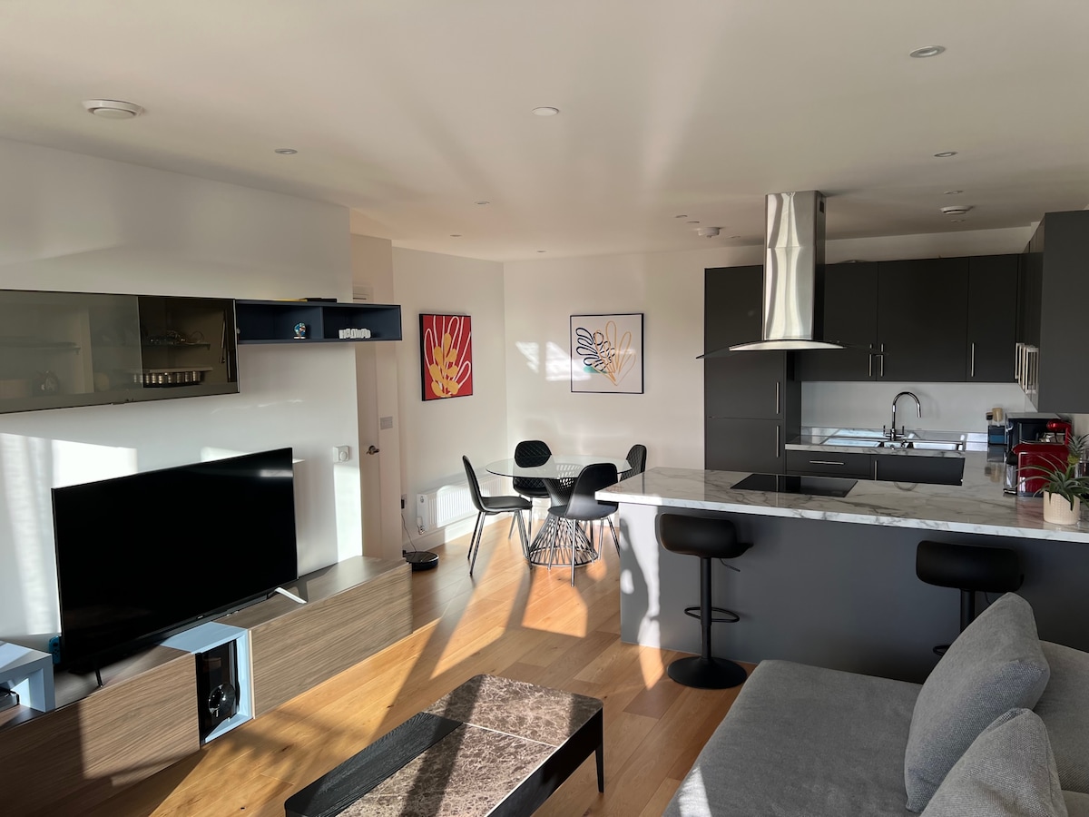 Enjoy a lux stay at this central London flat. Incredible views of London's iconic skyline. Flat is modern, stylish, comfortable luxury furniture, offers a spacious & quiet balcony, and modern kitchen. All you need for a short or long stay in London to relax, work, and enjoy walks around one of London's top gastronomical neighbourhoods. Located steps away from nice cafes, top rated restaurants river walk & London's top attractions. Secure building in a quiet street.