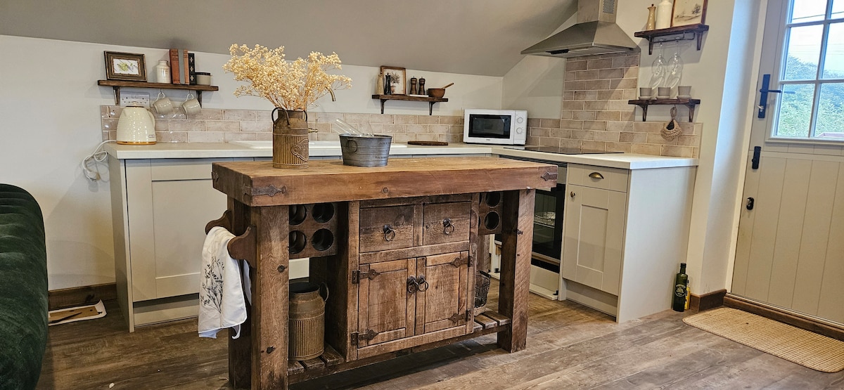 Set in the garden of our home with private garden for guest to use. Access through gate to woodland and Lytham. kitchen with microwave, toaster,kettle,fridge two ring hob, coffee machine. Bedroom with double bed,door to garden. Shower room with heated towel rail, sink and toilet. Lounge with TV and dinning table and sofas. Lovely outside seating area with woodland views. Electric car charger at extra cost. We have the best available broadband connection however can be affected by weather.