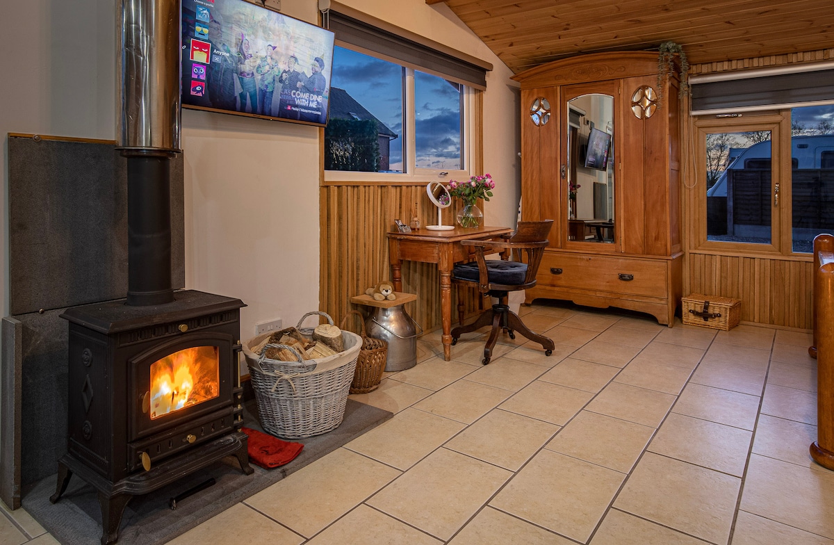 Set in the garden of our home with private garden for guest to use. Access through gate to woodland and Lytham. kitchen with microwave, toaster,kettle,fridge two ring hob, coffee machine. Bedroom with double bed,door to garden. Shower room with heated towel rail, sink and toilet. Lounge with TV and dinning table and sofas. Lovely outside seating area with woodland views. Electric car charger at extra cost. We have the best available broadband connection however can be affected by weather.