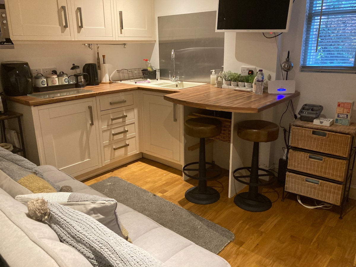 Converted barn with separate access and exclusive use of the entire self-contained space. Private off-road parking with Type 2 Charger for EVs. The bedroom includes a king-size bed and chest of drawers for storage. HD TV in lounge; WiFi (95mbps down); Alexa speakers with smart lights throughout (you can still just use the switches);voice-activated smart heating (again, you can just press the buttons); the fully-fitted kitchen includes kettle, microwave,FF, oven, and a Nespresso coffee machine.