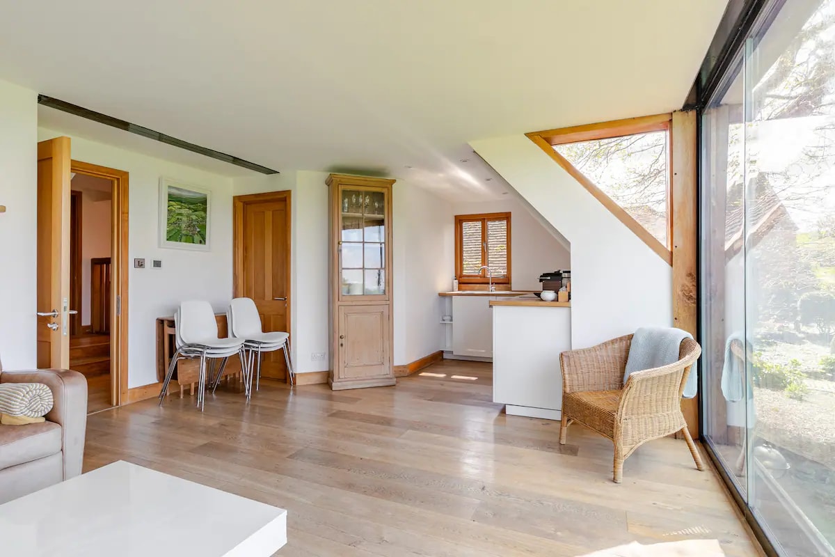 Delaford Stables is a completely self-contained annexe guest suite, attached to a charming period cottage on the outskirts of the village of Etchingham. • Accommodation comprises a double bedroom, a large vaulted-ceiling living room, & a modern shower/toilet suite. • The property has recently been refurbished to the highest modern standards while still retaining the character of the original stables & tack room. • Complimentary PROSECCO on arrival • CONTINENTAL BREAKFAST included in price