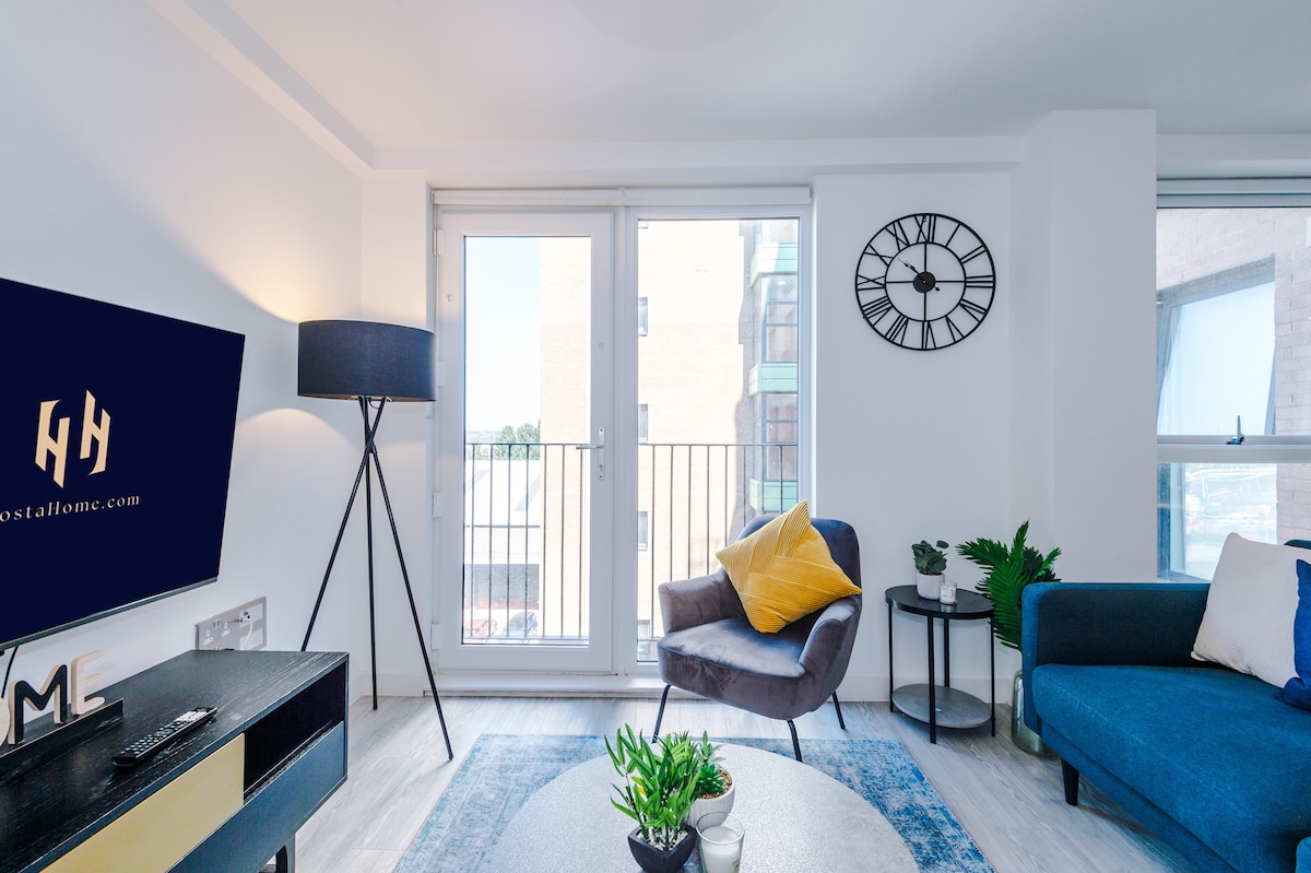 位于乌姆斯顿镇中心的现代公寓,带阳台