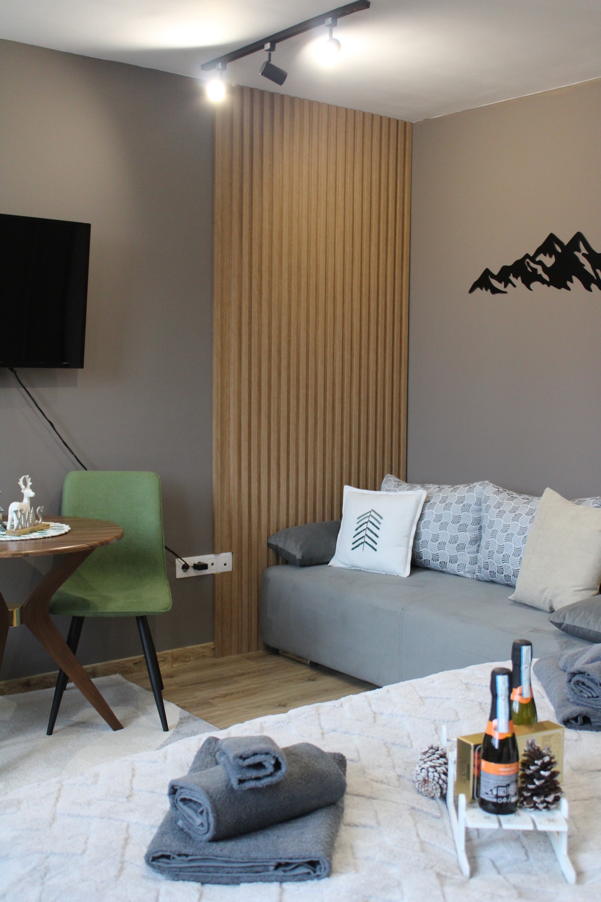 This is modern, new studio in Borovets gardens hotel. It is very close to the slopes, just 10 minutes by walk. It is very well equipped and has everything you need for your perfect vacation. We can provide airport transfer and ski equipment if you need. Be our guests!