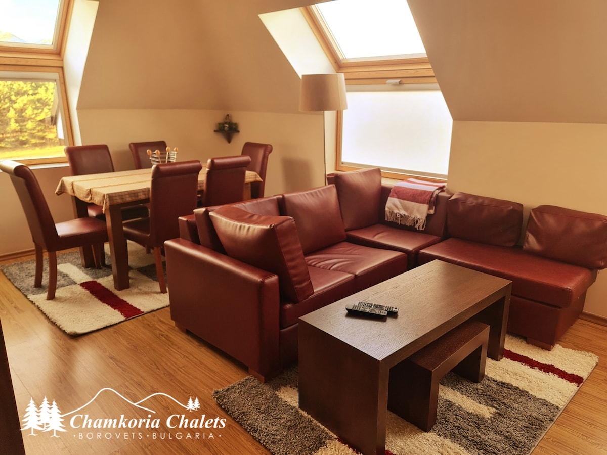 Our family apartment “Borovets Paradise” is located in the middle of the most popular ski destination in Bulgaria - Borovets in Semiramida Gardens, in front of Hotel Borovets hills. We offer: - one bedroom ( double bed) with beautiful view to the ski slopes - living room with huge sofa bed with 50” TV, fully equipped kitchen, two single bed - washing and dryer machine. SPA Center SKI in SKI out - 10 min to the best ski slopes Yastrebets I, II and III including the snow park!