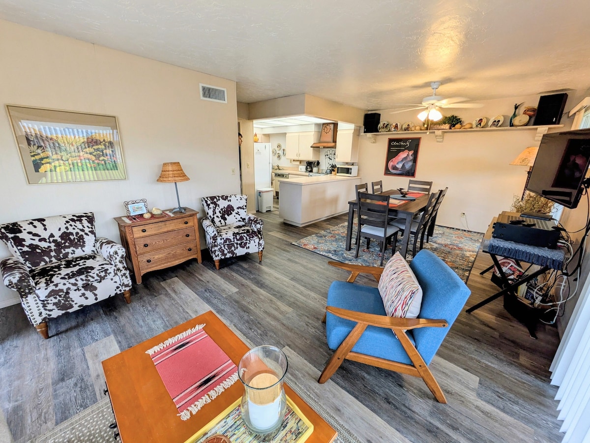 Cedar Crest is a nicely remodeled cabin while keeping its original charm. It is easy access. A few steps lead you to the deck in the middle of the trees... This cabin can sleep 2 people in a king bed and if you would like to bring your kids, the master bedroom has a full size futon. (Kids sleep free) For pet owner, the east side of the cabin has a fenced-in space. We recommend you do not let them be there unsupervised as a motivated mountain lion could jump the fence and arm your pet.