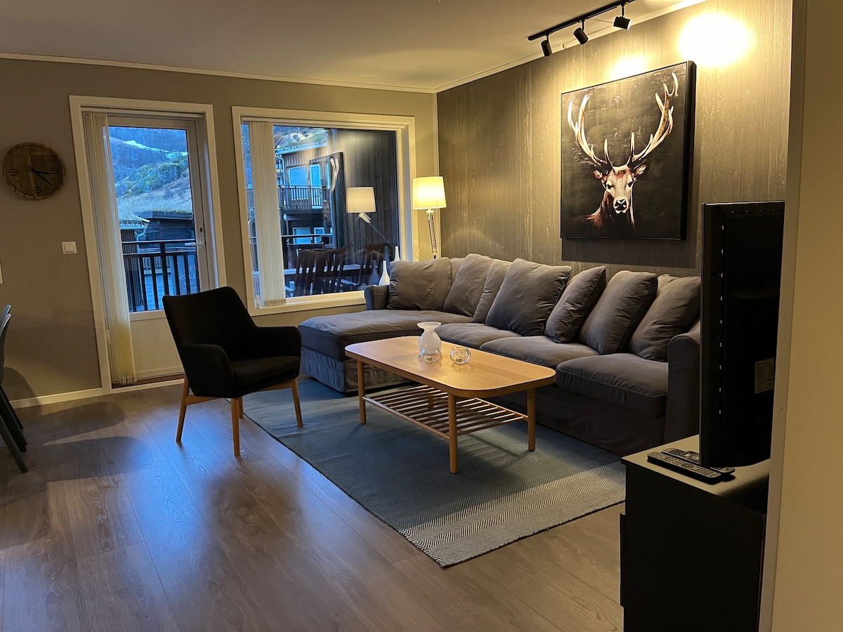Drømmer du om en perfekt familieferie? Lei vår koselige leilighet på Bortelid! Nyt vinterens gleder med skiløyper og skitrekk rett i nærheten, og en kort spasertur til badeplass om sommeren. Den moderne leiligheten i første etasje har 2 soverom, elektrisk peis, vaskemaskin og tørketrommel. Gulvvarme i alle rom, bortsett fra soverommene. Parkeringsplass rett ved huset. Vennligst ta med eget sengetøy og håndklær. Leietakere er ansvarlige for sluttrengjøringen før avreise. Strøm 3 kr per kWh.