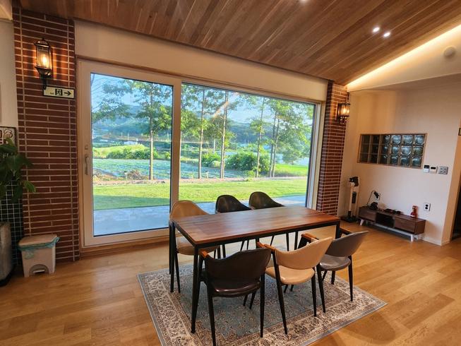 호숫가에 위치한 넓은 마당과 정원이 있는 시골별장감성을 지닌 주택입니다. 오롯이 한팀만을 위한 집입니다.뜰에는 넓은 잔디마당 (200평)과 꽃밭이 있고, 시원하게 탁 트인 하늘과 호수를 전망할 수 있어요. 호수위로 지는 노을을 바라보며 캠핑감성 가득한 불멍의 밤을 보내세요. 마당에서 모닥불과 솥뚜껑구이를 할 수 있고, 데크에서는 화로불멍과 바베큐를 할 수 있어요. 추운 밤에는 거실에서 벽난로를 지피며 밤을 보낼 수 있어요. 마당 한모퉁이에 골프네트가 있고 20m이내 숏게임을 연습할 수 있어요. 밤하늘이 맑은 날에는 마당이나 옥상에서 별헤는 밤을 보실 수 있습니다. *연박 예약시 모닥불 1회 무료로 서비스해드립니다.