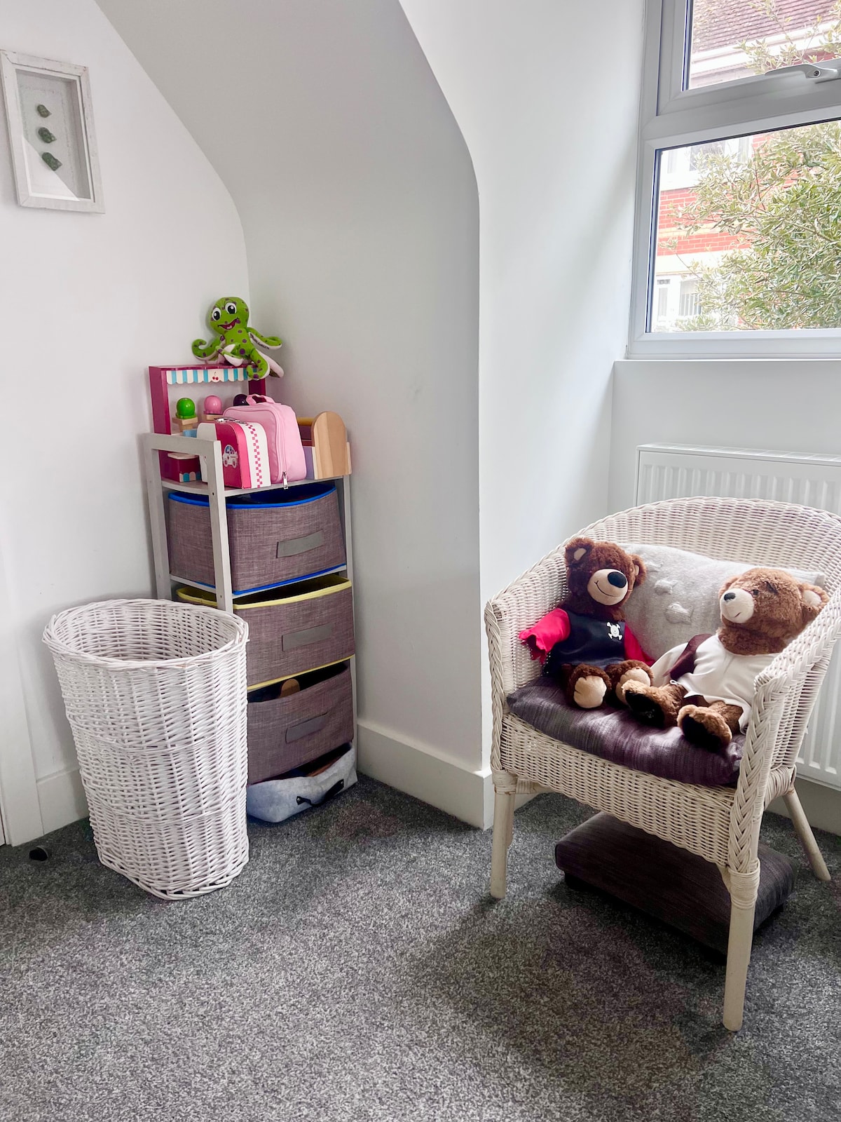 Our Guest Annex is a Studio with its own entrance, keysafe & parking infront. Upon entering the hall, there is a lounge with a sofa-daybed (with trundle), a smart TV, a kitchenette and a dining table. The kingsized zip-link bed is located at the back of the sunny room with large windows overlooking the back garden. Access to our washing machine, which is located in the main house, is available on request. Housekeeping is weekly, normally on Sundays, when your stay is 7days or longer.